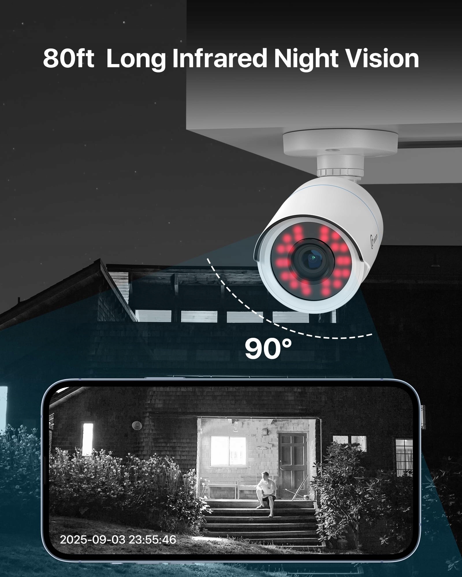 2MP 1080P HD i widzenie w nocy do 80ft – Sensor 2,0MP dostarcza wyraźne obrazy HD z precyzyjnym odwzorowaniem kolorów dla niezawodnego monitoringu. 24 diody IR LED umożliwiają widzenie w nocy do 80ft (w optymalnych warunkach).