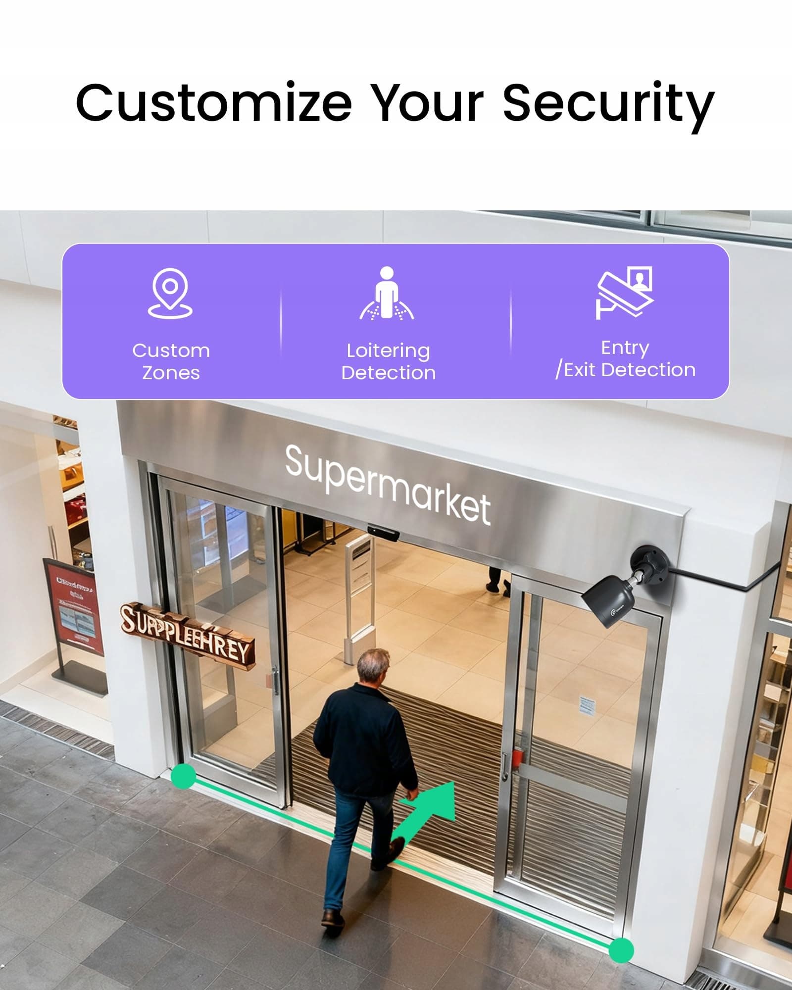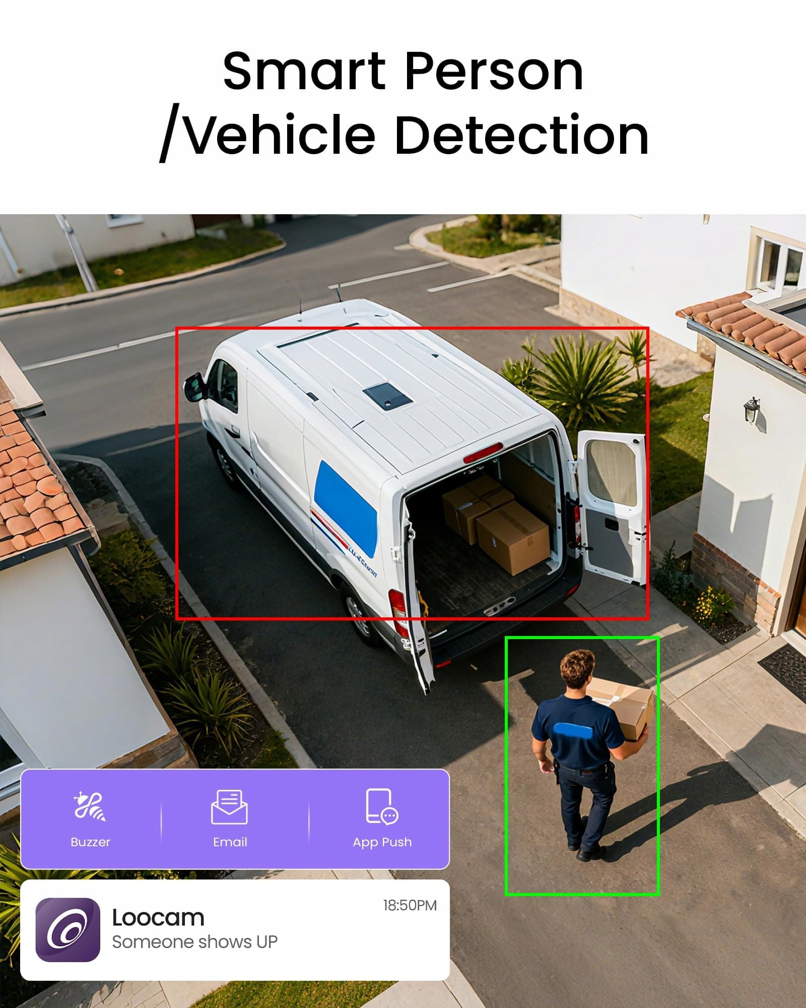 【Zaawansowane wykrywanie osób z powiadomieniami push】Nasz system kamer PoE jest wyposażony w zaawansowaną technologię wykrywania ludzi, która potrafi rozpoznawać ruchy ludzkie i odróżniać je od innych obiektów – co redukuje fałszywe alarmy. Ponadto możesz dostosować strefę detekcji ruchu dla każdej kamery według własnych potrzeb. Gdy zostanie wykryty ruch osoby, inteligentne powiadomienia natychmiastowe i alarmy e-mail zostaną wysłane na Twój smartfon.