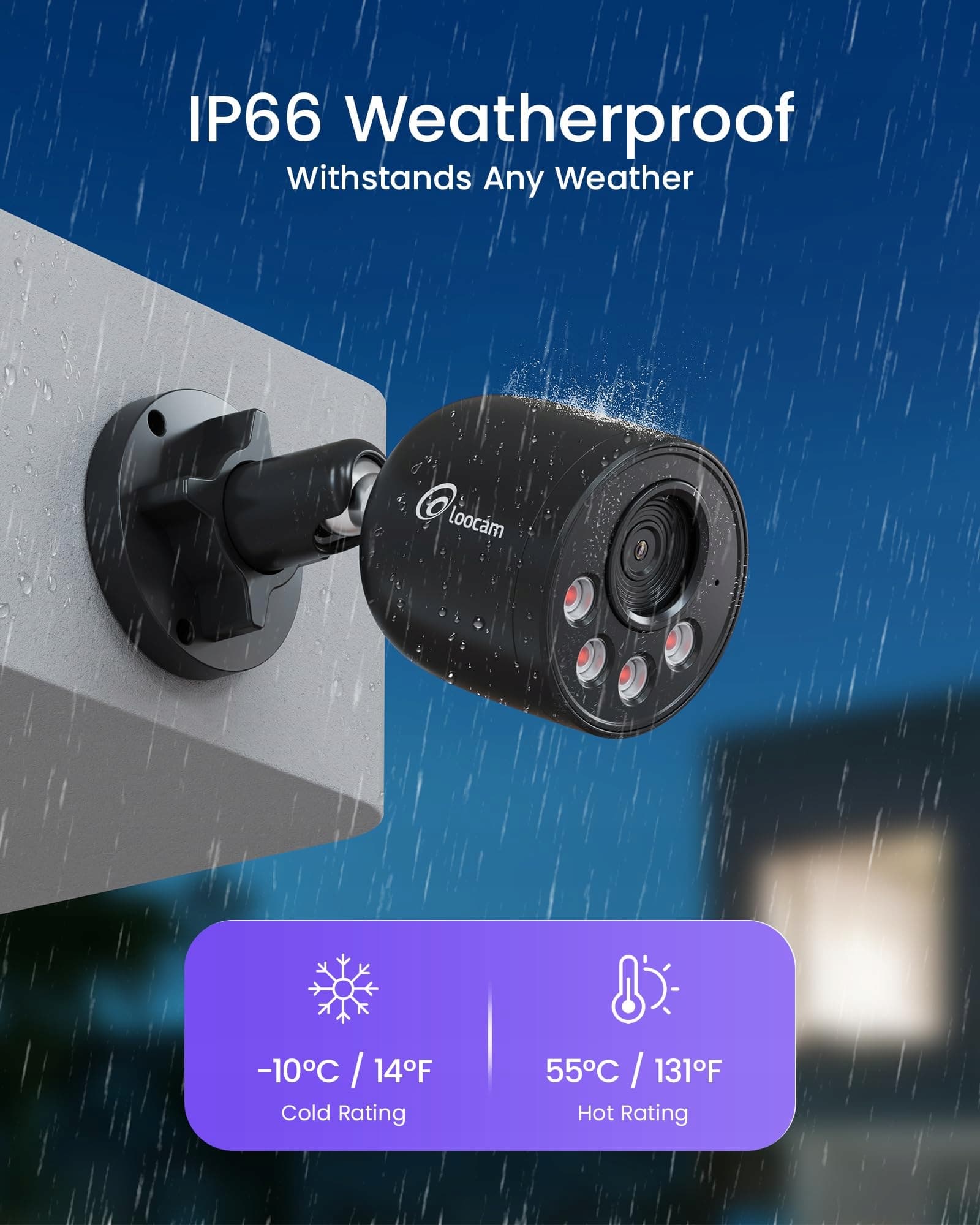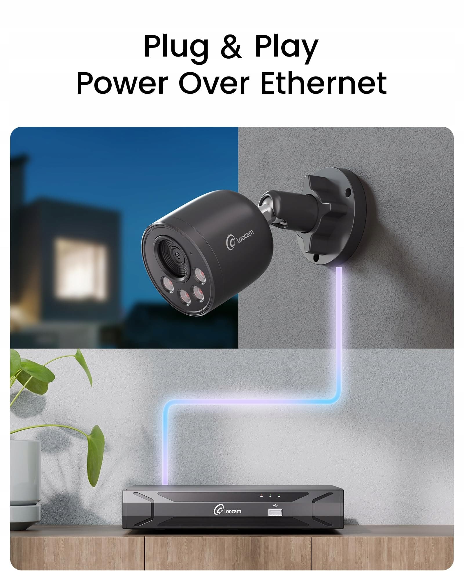 【4K Ultra HD i widzenie nocne IR do 30m】System kamer Loocam PoE dostarcza ostre wideo 8MP (3840 x 2160). Kamera zewnętrzna rejestruje żywe kolory i wyraźne detale w świetle dziennym, dzięki czemu każde nagranie ma bogatą teksturę. Skorzystaj z poprawionego bezpieczeństwa dzięki imponującemu zasięgowi widzenia nocnego IR do 30m przy oświetleniu otoczenia – dla krystalicznie czystego obrazu w dzień i w nocy, aby skutecznie monitorować swój dom lub firmę.