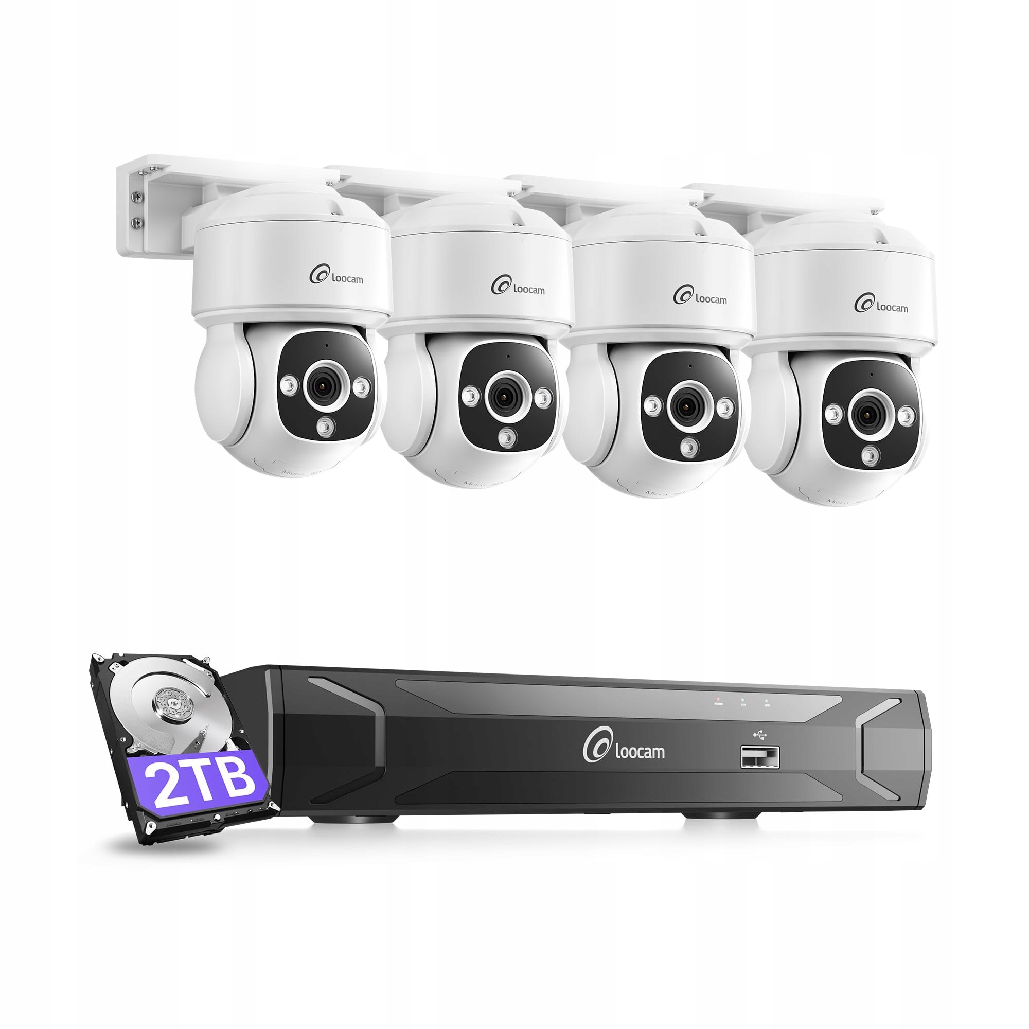 System monitoringu Loocam 4K PoE z dwukierunkowym audio, 8-kanałowy NVR z dyskiem 2TB + 4x 8MP 360° Pan-Tilt POE kamery IP, AI wykrywanie osób/pojazdów, widzenie nocne do 30m, powiadomienia alarmowe