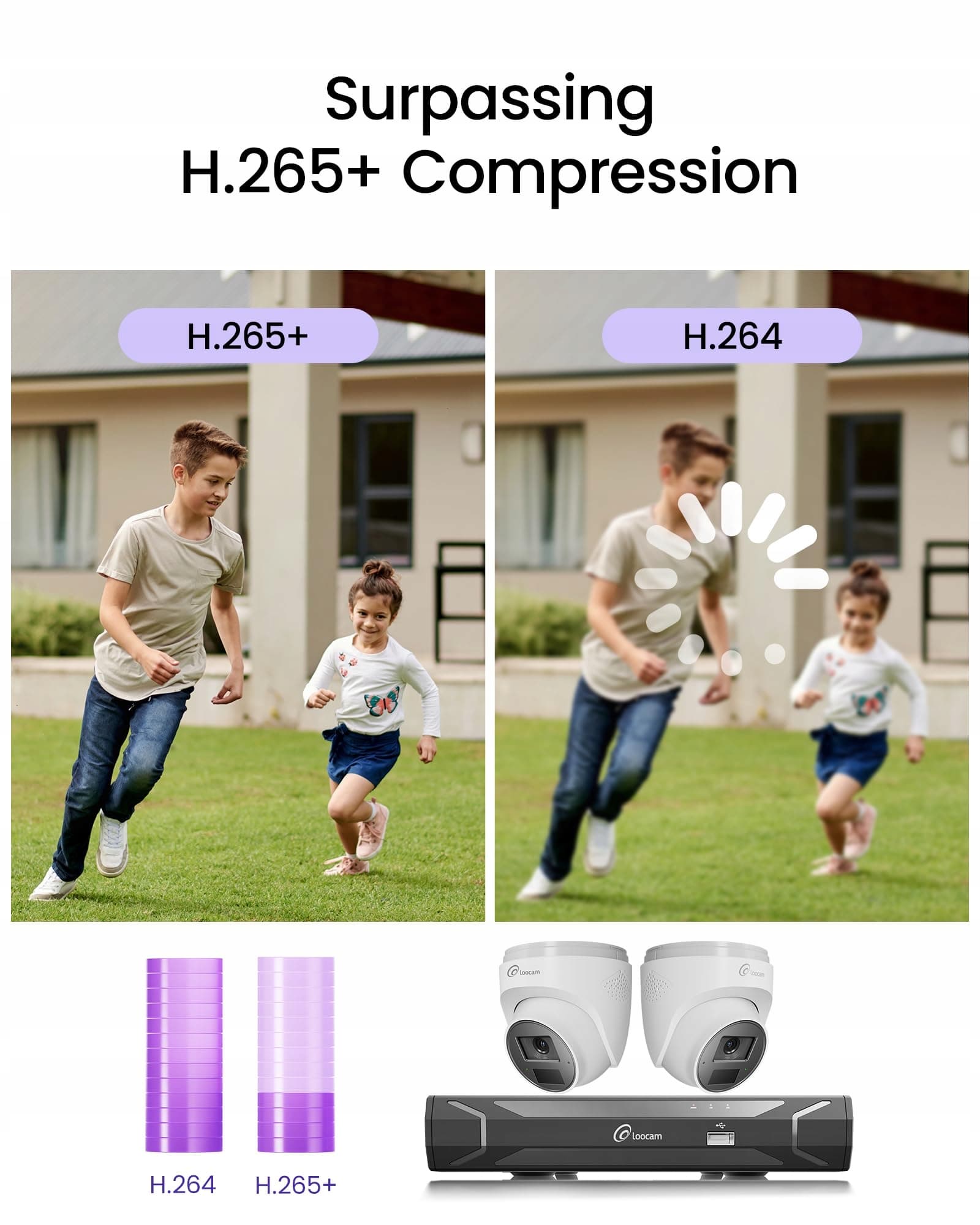 [𝗛.𝟮𝟲𝟱+-𝗡𝗩𝗥 & 𝗭𝗮𝗯𝘂𝗱𝗼𝘄𝗮𝗻𝘆 𝟭𝗧𝗕 𝗱𝗶𝘀𝗸 𝗯𝗲𝘇𝗽𝗶𝗲𝗰𝘇𝗲𝗻𝗶𝗮] Ulepszona kompresja wideo H.265+ podwaja efektywność w porównaniu z H.264: wydłuża czas nagrywania, zmniejsza zużycie pasma sieciowego i maksymalizuje pojemność pamięci — co jest kluczowe dla całodobowego, długoterminowego monitoringu. System CCTV wyposażony jest w fabrycznie zainstalowany dysk bezpieczeństwa 1TB (możliwość rozszerzenia do 8TB przez port SATA) i nie wymaga miesięcznych opłat abonamentowych. Technologia szyfrowania danych w pełni chroni Twoje nagrania i dane osobowe, skutecznie odpowiadając na obawy dotyczące prywatności konsumentów.