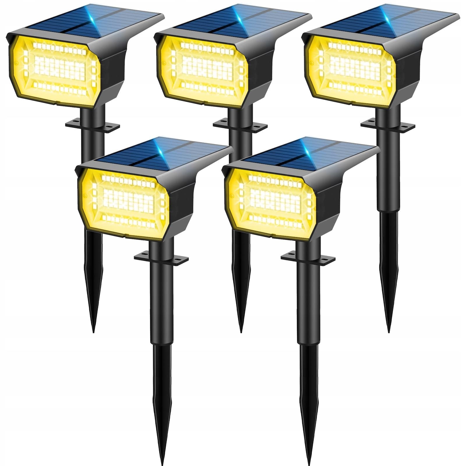 LOTMOS Solarne reflektory zewnętrzne [5 szt./72LED], 3 tryby IP67 Wodoodporne solarne lampy ogrodowe, 3000K mogą być montowane na ścianie, solarne lampy ogrodowe na tarasy, ogrodzenia, ścieżki, podjazdy, werandy