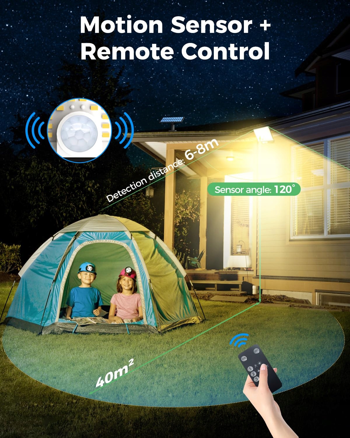 LOTMOS 2 sztuki lamp solarnych na zewnątrz z czujnikiem ruchu, LED lampa zewnętrzna solarna IP65 wodoodporna lampa solarna 3 tryby reflektor z pilotem, lampa solarna na zewnątrz do ogrodu garażu na dwór