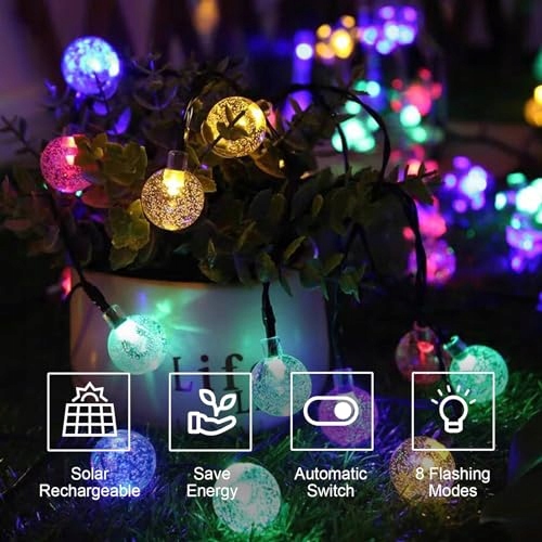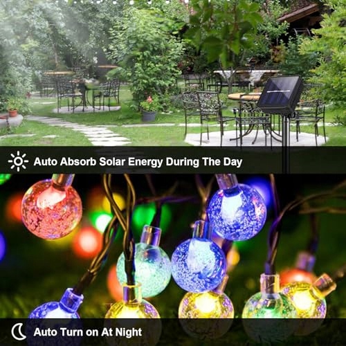 30 LED Solarne Lampki Łańcuchowe - Długość każdej solarnych lampek łańcuchowych wynosi 8,1 m (długość lampek 4,35 m plus długość przewodu zasilającego 3,75 m, łącznie 8,1 m), a w zestawie znajduje się 30 kryształowych kul. Elastyczny przewód łatwo ukryć i owinąć wokół roślin, znaków i ogrodzeń, tworząc niesamowite nocne sceny przy oświetleniu. Te lampki mogą ładować się w ciągu dnia i automatycznie włączać o zmierzchu oraz wyłączać o świcie.