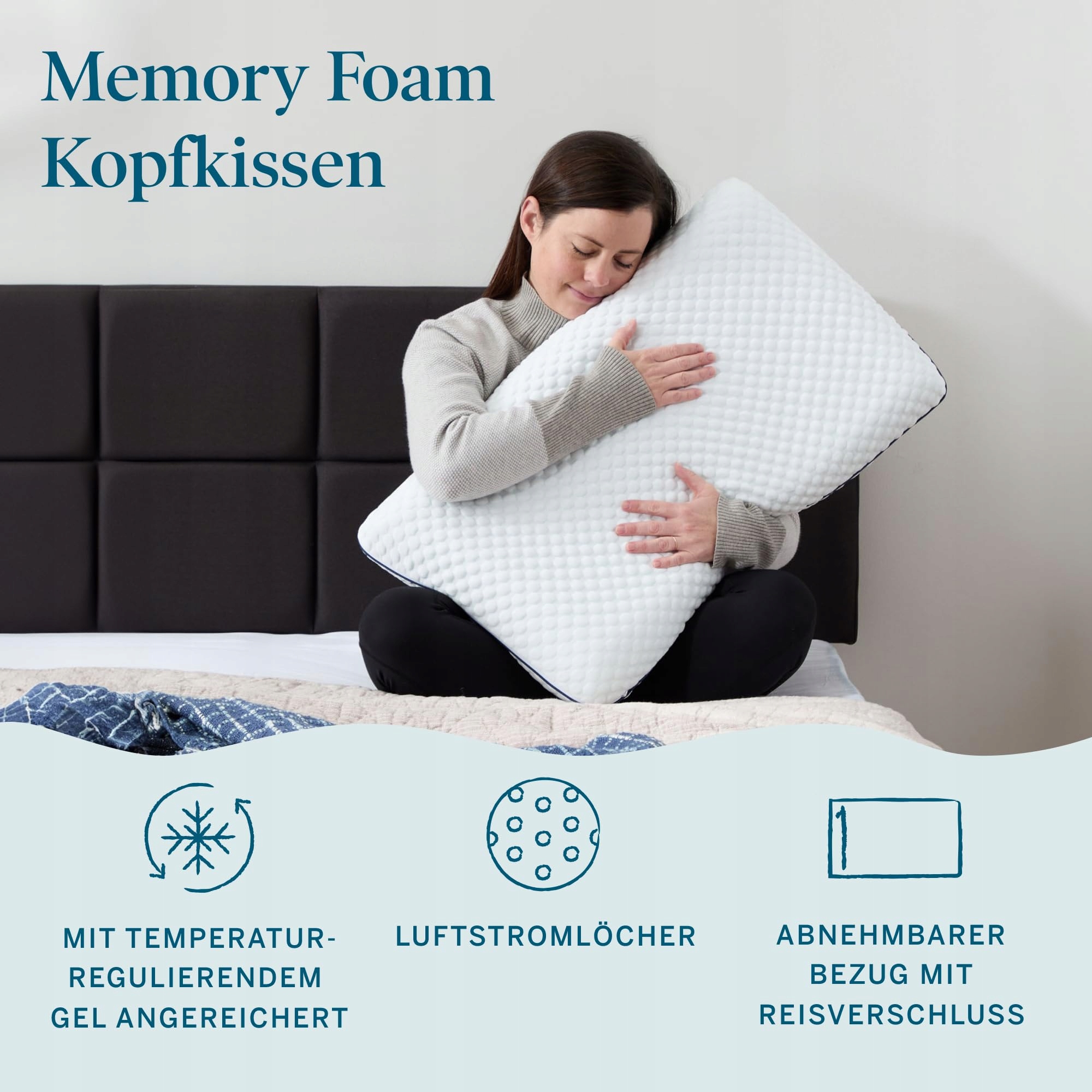 ELASTYCZNA PIANKA MEMORY FOAM: Super miękka, a jednocześnie podtrzymująca pianka memory dopasowuje się do kształtu głowy, szyi i ramion, zapewniając dopasowany komfort; o wysokości 14 cm szczególnie odpowiednia jako poduszka dla osób śpiących na boku