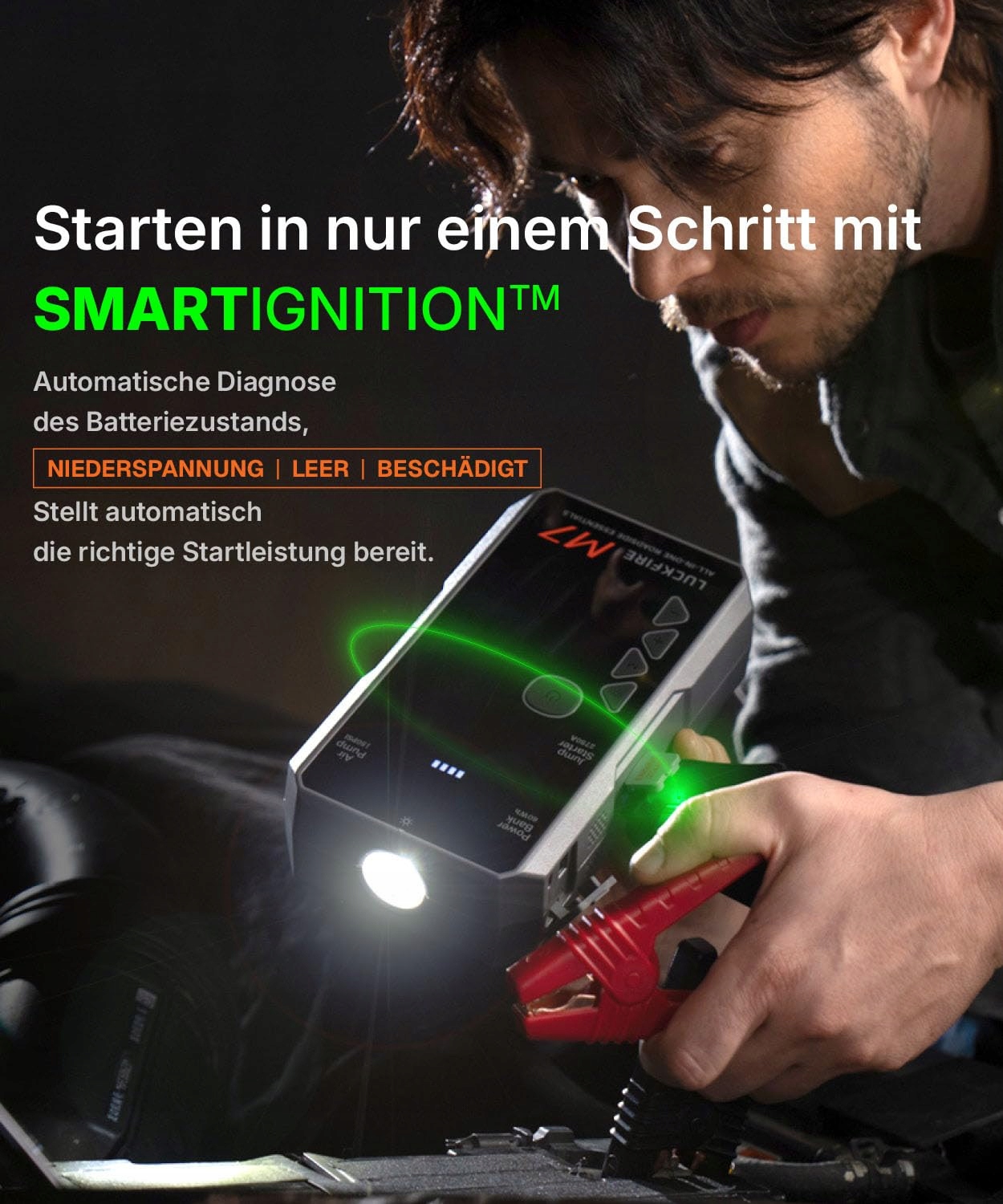 [PROSTA OBSŁUGA] Wyłączna technologia SMARTIGNITIONTM: Bezpieczny rozruch jednym krokiem dla rozładowanych lub uszkodzonych baterii w kilka sekund dzięki inteligentnym algorytmom – bez błędów. Jako 150-PSI elektryczna pompa powietrza z inteligentnymi ustawieniami wstępnymi (auto, motocykl, rower, piłka itp.) oraz funkcją auto-stop – prosto i bez wysiłku.