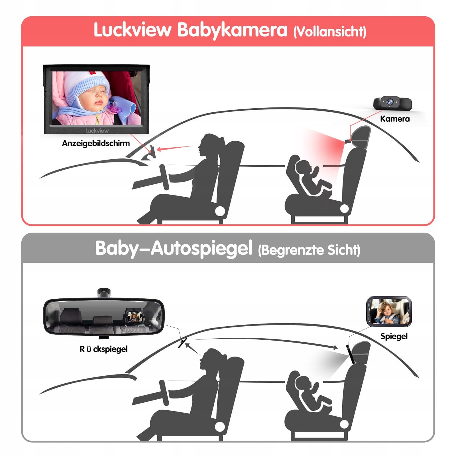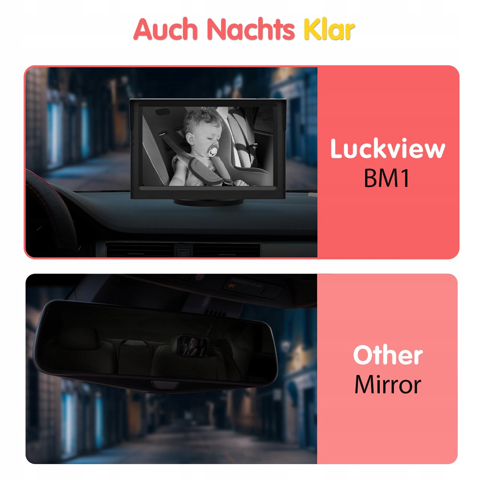 LUCKVIEW BM1 Lustro Samochodowe dla Dzieci, 5'' 1080P Kamera do Nocnego Widzenia na Tylnej Siedzeniu, 3-krotne Powiększenie dla Lepszego Widoku, Łatwa Instalacja w 5 Minut