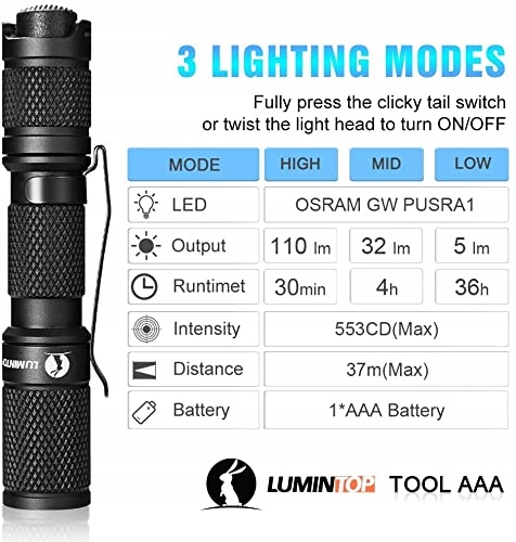 LUMINTOP Tool AAA EDC Latarka kieszonkowa, Latarka brelokowa o rozmiarze kieszonkowym, Super jasna 110lm, 3 tryby, wodoodporna IPX8 [5 lat gwarancji]
