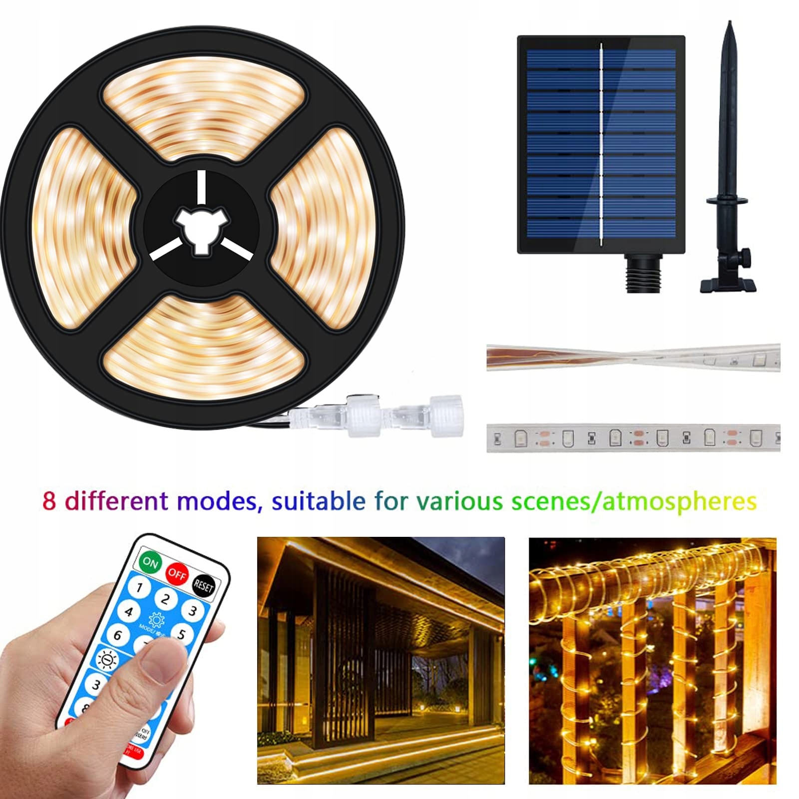 Ciepłobiałe LED: 10m pasek LED z 560 jasnymi diodami 2835, 8 trybów oświetlenia migotanie, błyskanie, migoczące błyskanie, stałe światło itd. Ciesz się niezwykle ciepłym i jasnym oświetleniem z ulepszoną jakością światła.