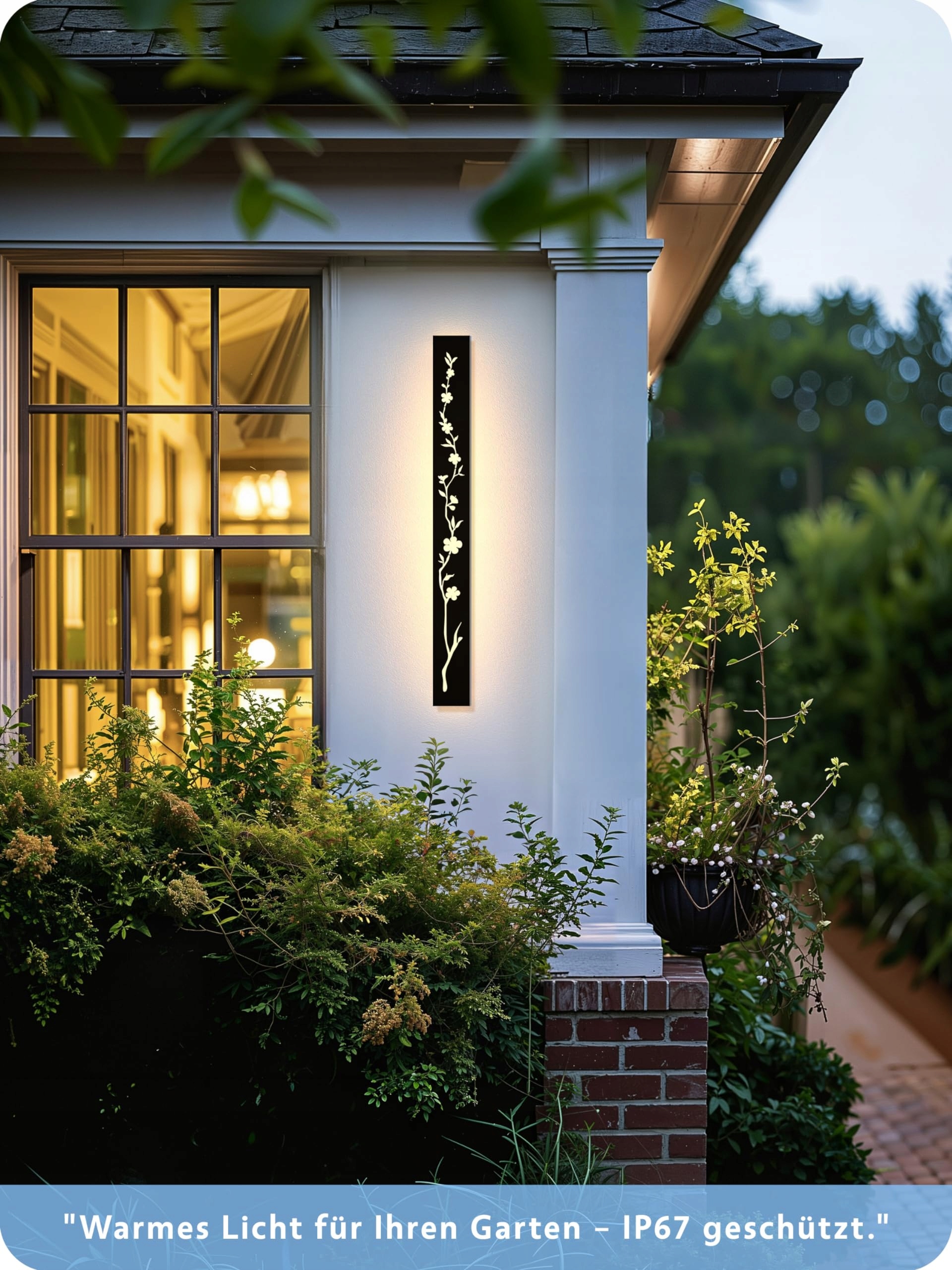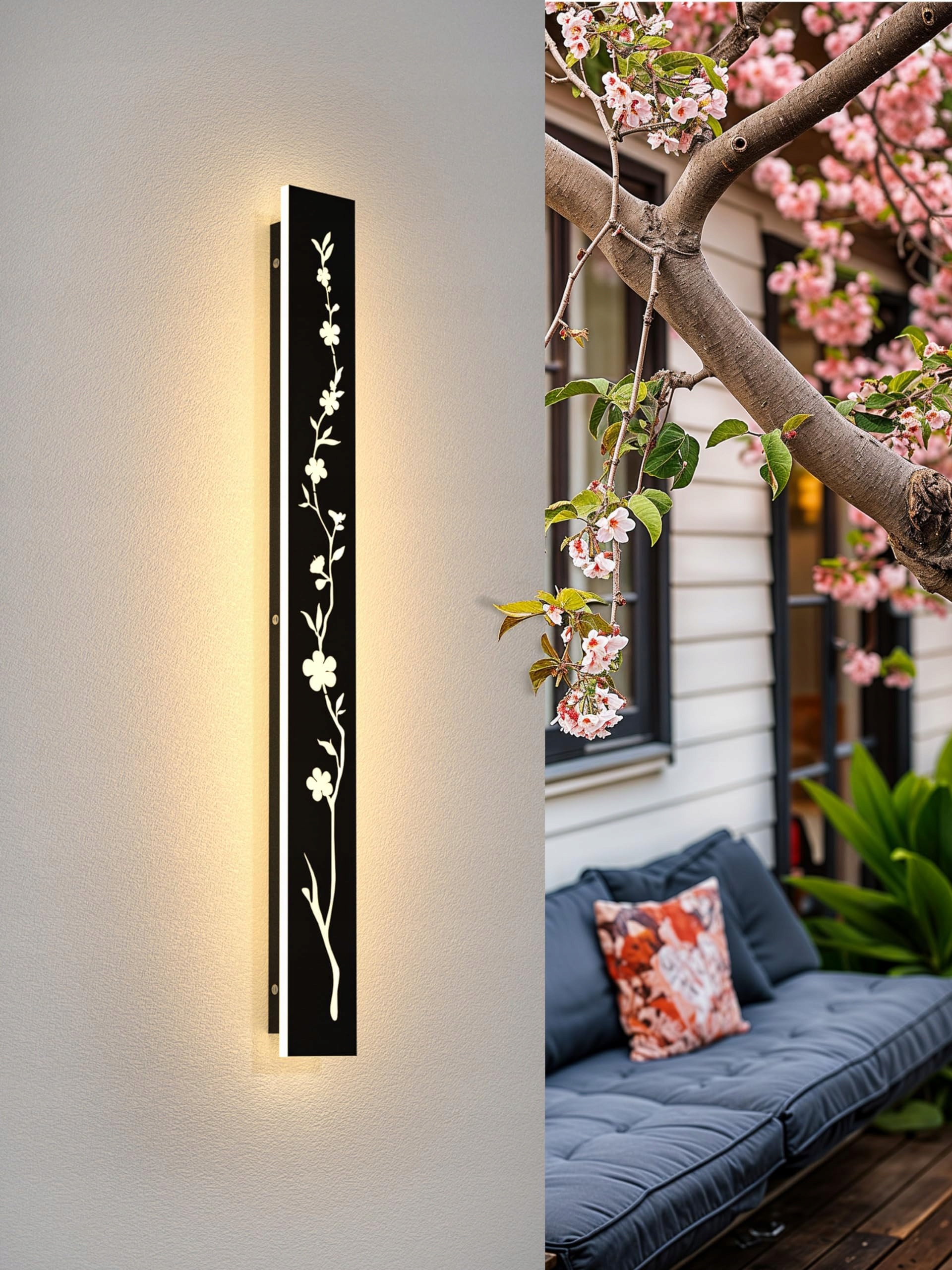 LUOLONG Led Długa Lampa Ścienna Czarna 80cm Lampa Zewnętrzna 25W IP67 Wodoodporna Lampa Ścienna do Wilii 3000K Projekt Kwiatu Brzoskwini Długie Lampy Ścienne na Zewnątrz Ściany Ogrody Ganek Schody Tarasy Oświetlenie