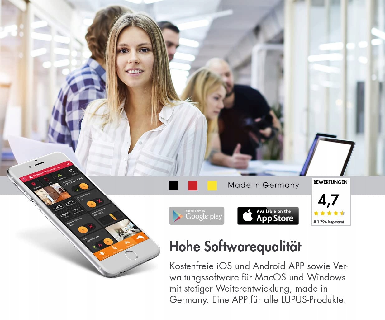 ❗ WYSOKA JAKOŚĆ OPROGRAMOWANIA: bezpłatna aplikacja na iOS i Android oraz oprogramowanie zarządzające dla MacOS i Windows z ciągłym rozwojem, made in Germany. Jedna aplikacja dla wszystkich produktów LUPUS. Możliwa ścisła integracja z systemami alarmowymi LUPUS. Wysokie wymagania dotyczące ochrony danych: brak chmury – brak pożeracza danych. Nawet adres e-mail nie jest wymagany.