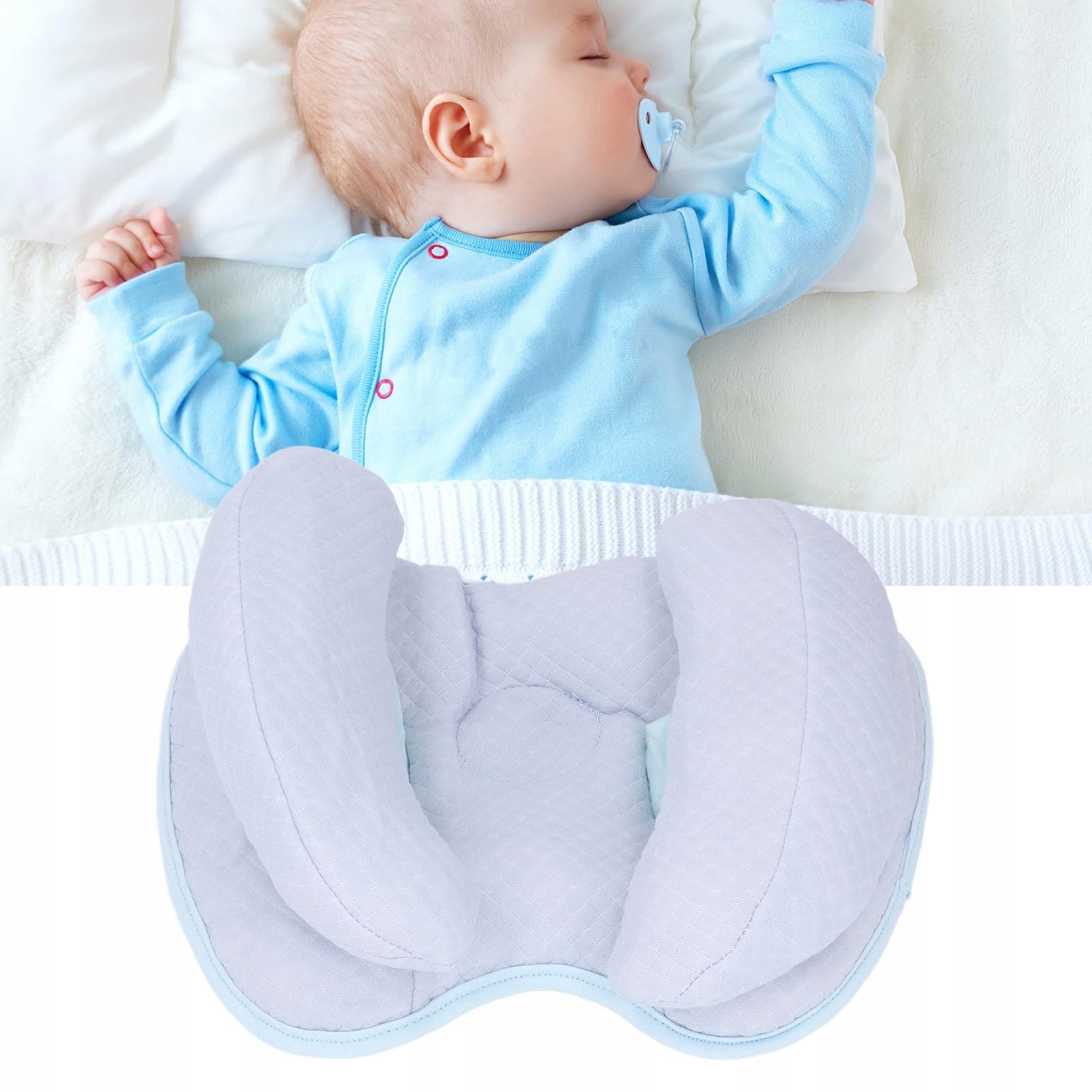 [Koryguje kształt głowy] Poduszka podtrzymująca dla niemowląt została zaprojektowana, aby korygować i zapobiegać płaskiej głowie oraz przechylaniu się głowy u niemowląt, zapewniając zdrowy rozwój kształtu głowy.
