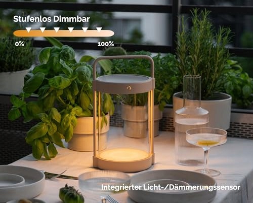 DŁUGI CZAS ŚWIECENIA – Energooszczędny, wydajny akumulator litowo-jonowy gwarantuje długi czas świecenia (min. 11 godzin, w zależności od intensywności ściemniania). Bezprzewodowa lampa zewnętrzna nadaje się jako światło nastrojowe na zewnątrz lub jako estetyczny dodatek do wnętrza.
