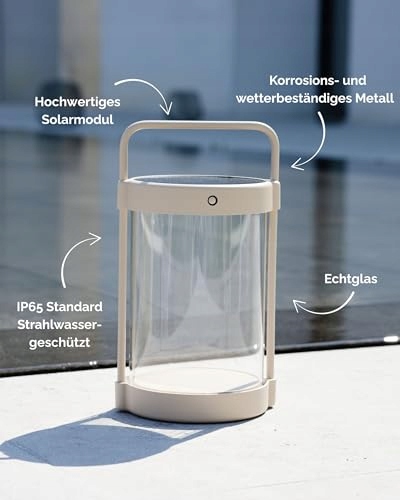 ŁADOWANIE SOLARNE I USB-C – Innowacyjna latarnia solarna z dodatkową możliwością ładowania przez USB-C oraz wysokiej jakości diodami LED zapewnia przyjemne ciepłe białe światło i maksymalną elastyczność. Stylowa lampa solarna do użytku wewnątrz i na zewnątrz, wyróżniająca się prostym designem i klarowną formą.