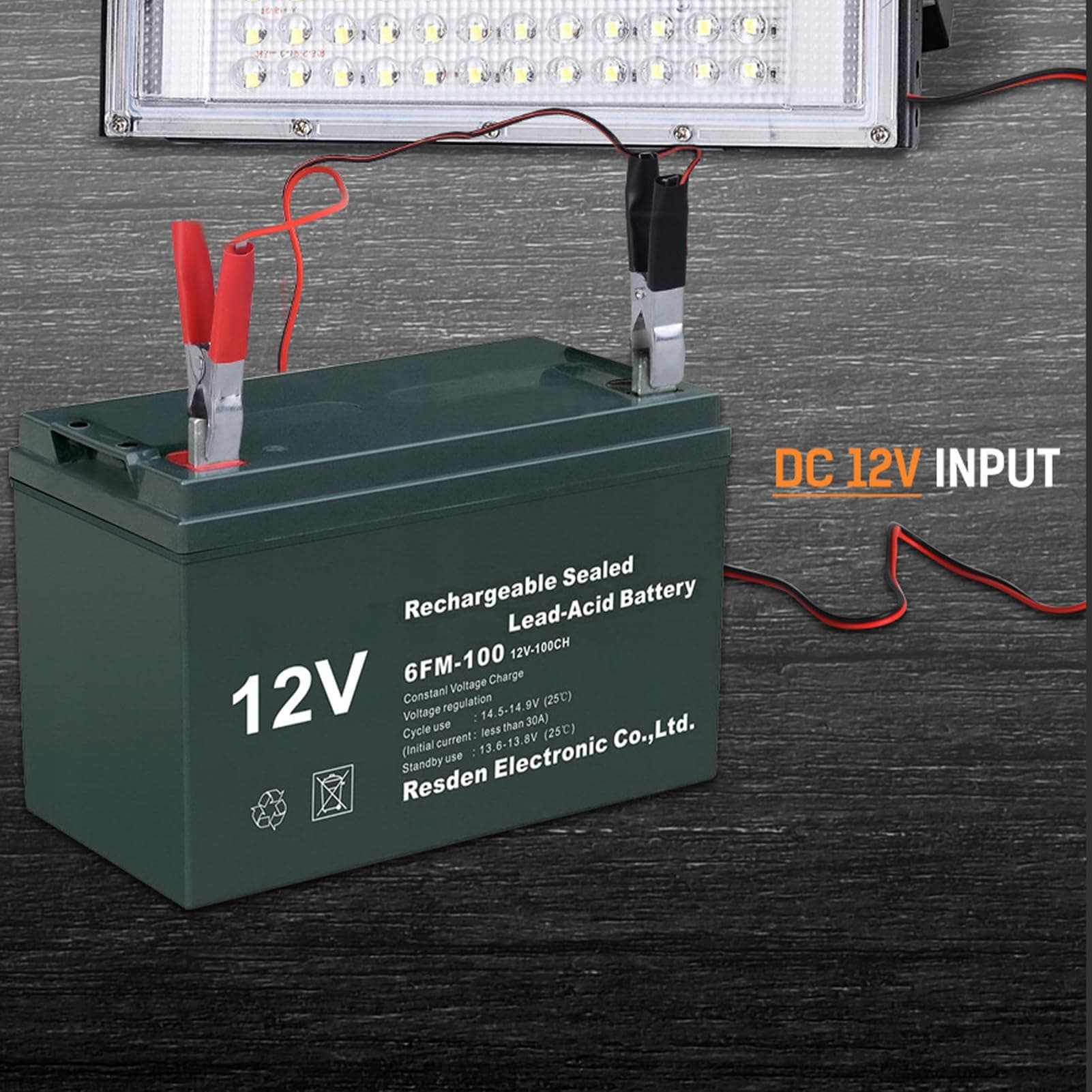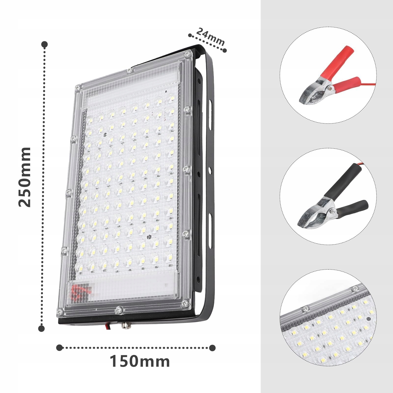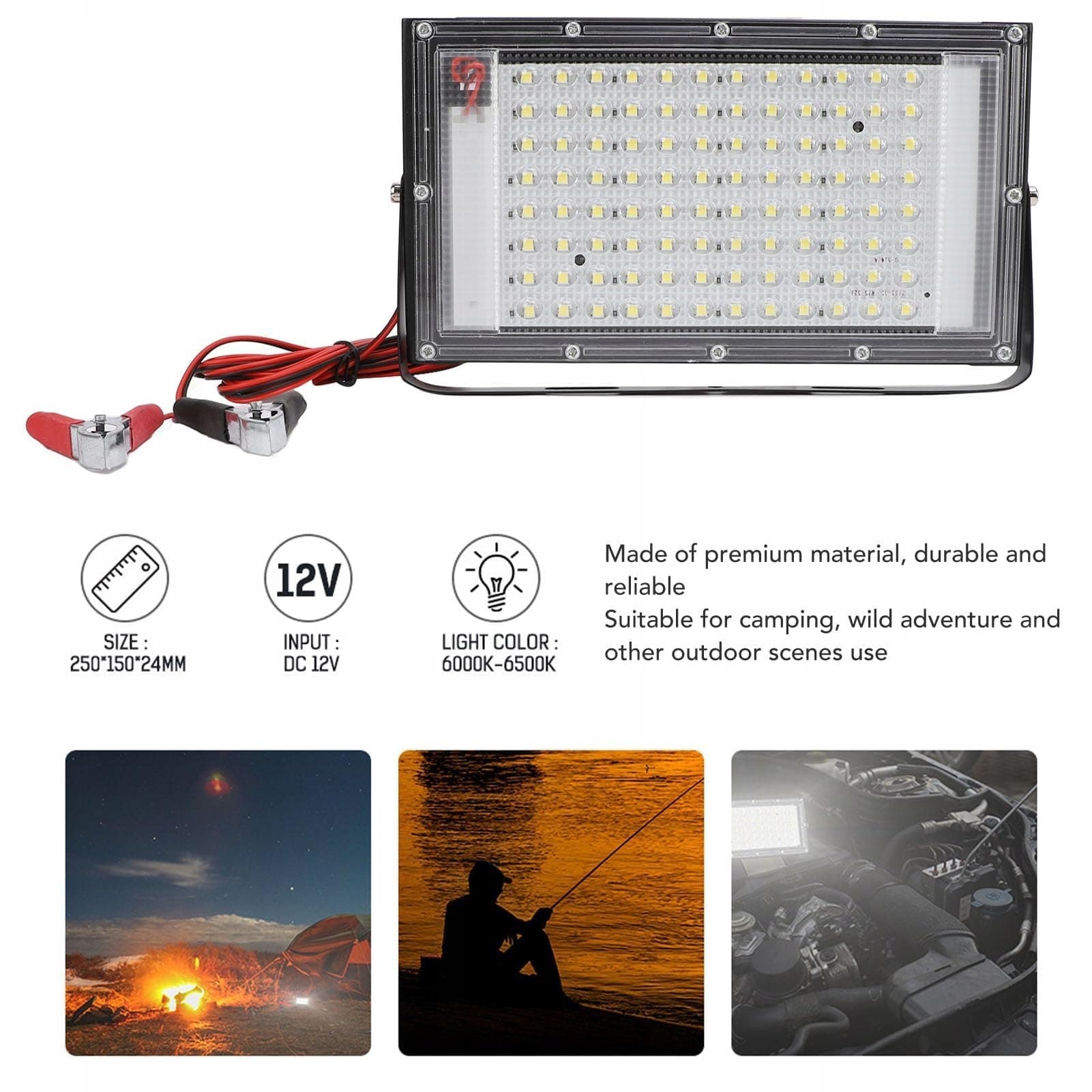 lvifloae 100W LED Flood Light 12V Flood Light Board IP66 Wodoodporne na zewnątrz -LED -Reflektor z baterią -Krokodylkowy klips na wypadek awarii -Awaryjne -DC12V