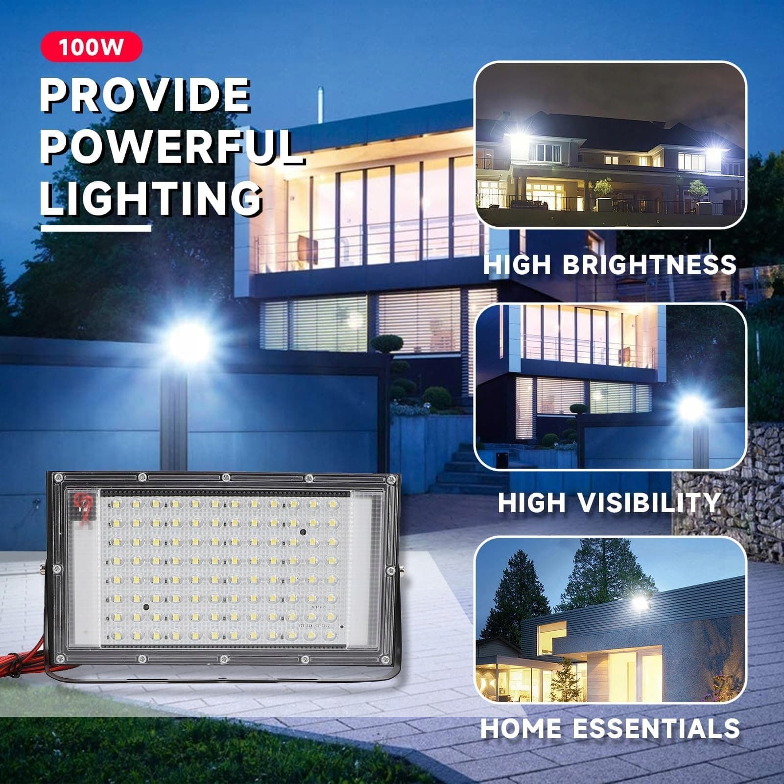 Wysoka jasność: Ta tablica reflektorowa zapewnia jasną moc 100 W i oferuje silne oświetlenie dla lepszej widoczności oraz dodatkowego bezpieczeństwa w środowiskach na zewnątrz. W miejscach na zewnątrz, niezależnie od tego, czy jest to podwórko, parking czy teren pracy na polu, szerokie oświetlenie pozwala ludziom wyraźnie widzieć otoczenie, co zmniejsza ryzyko wypadków. Działa również jako odstraszacz