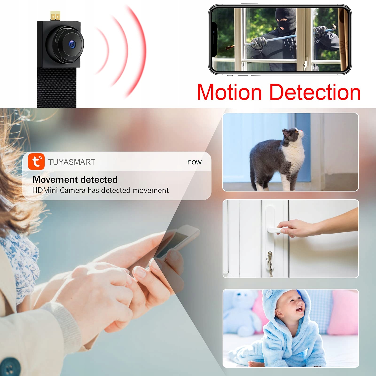 【Mini kamera WLAN】Miniaturowa kamera WiFi oferuje nowe inteligentne życie dla Ciebie; prostsze połączenie WiFi przez aplikację ''TuyaSmart'', umożliwiającą oglądanie na żywo na urządzeniu mobilnym po zakończeniu konfiguracji; inteligentne wykrywanie ruchu i odtwarzanie wideo przez aplikację zapewniają większy komfort.