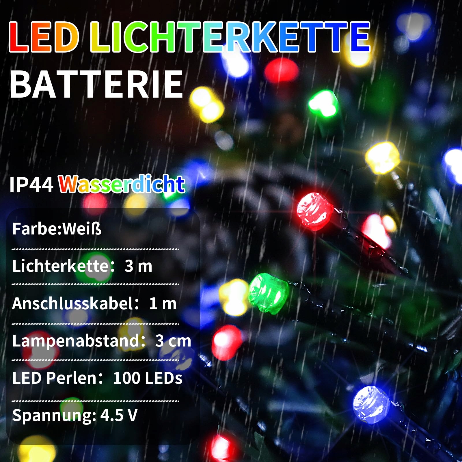 2x100 LED łańcuch świetlny na baterie: Całkowita długość 100 LED łańcucha świetlnego wynosi 4 m (3 m łańcuch świetlny + 1 m przewód zasilający), odległość między lampami 3 cm, wysoka gęstość perełek, mały rozmiar, lepszy nastrój świetlny. Problem splątania zbyt długiego, lekkiego łańcucha świetlnego można skutecznie uniknąć