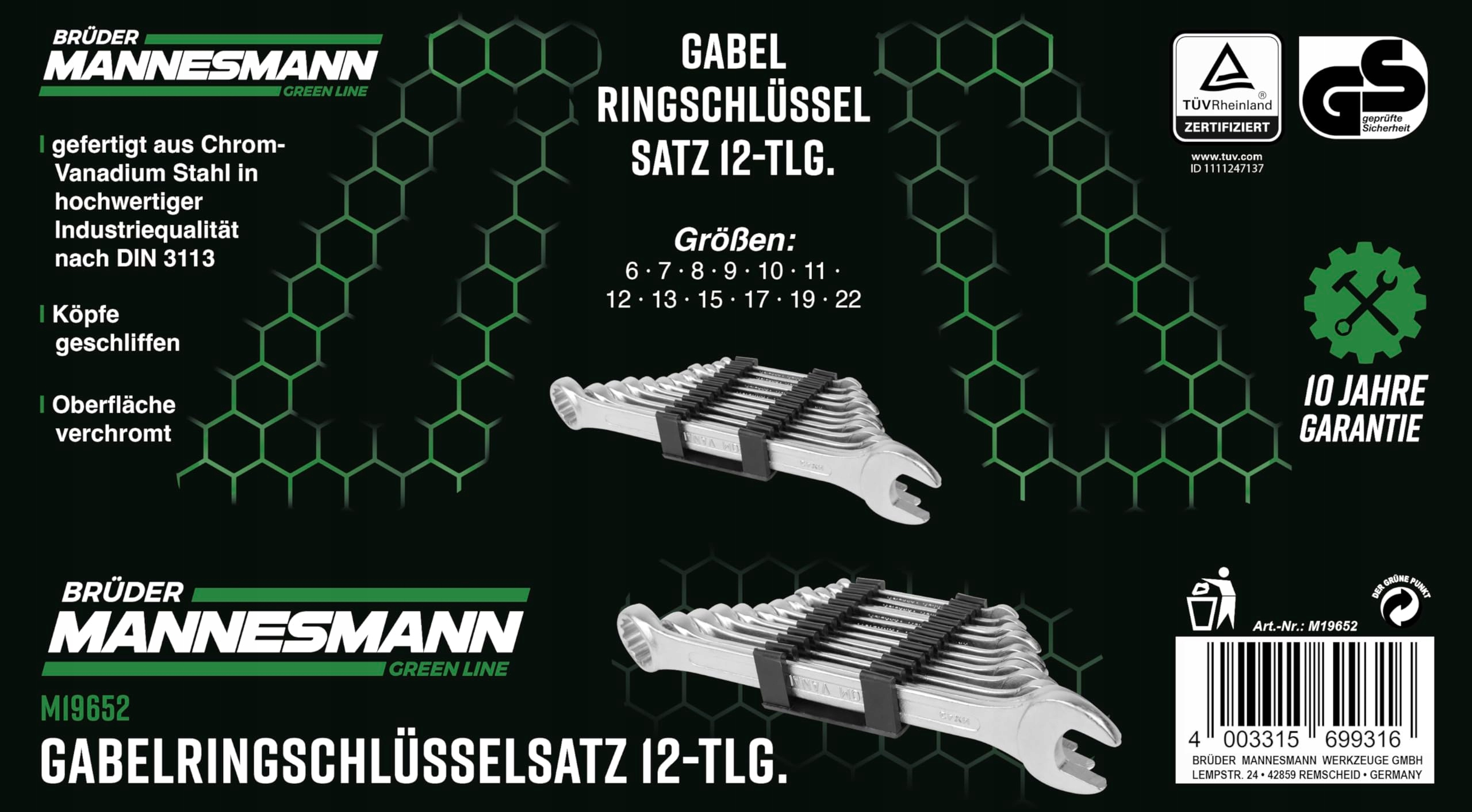 M19652 ZESTAW KLUCZY PŁASKO-OCZKOWYCH 12-CZĘŚCIOWY 6-22 MMa | Premium Supply