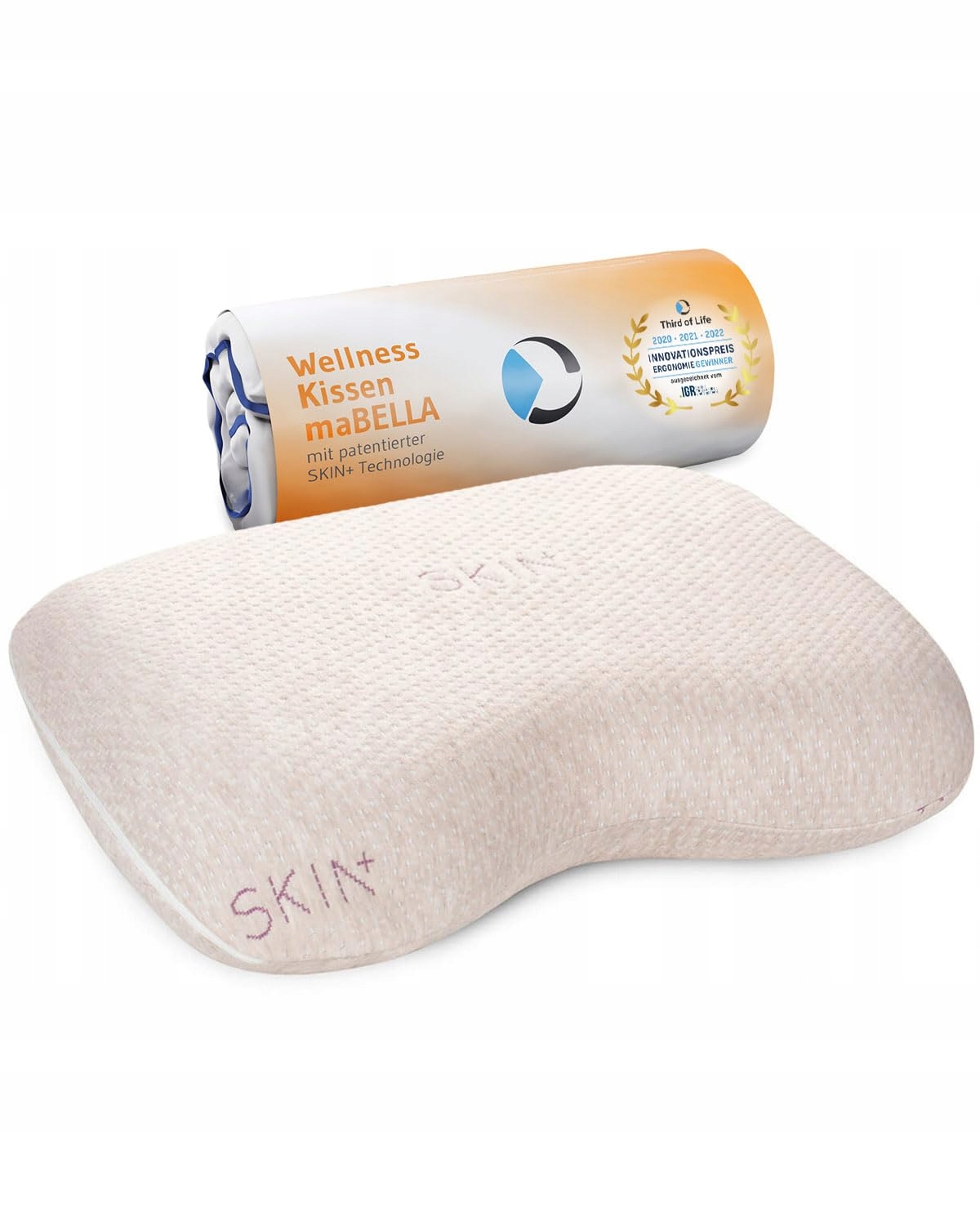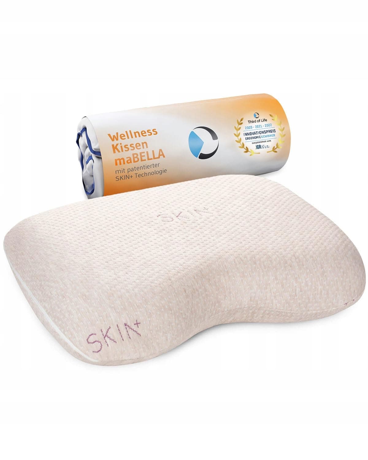 Poduszka zdrowotna maBELLA | Poduszka na szyję z pokrowcem SKIN+ i probiotykami do oczyszczania i pielęgnacji skóry | Aromaterapia dzięki rdzeniowi Ylang-Ylang w piance pamięciowej | Ergonomiczna poduszka wspierająca przeciw bólom szyi
