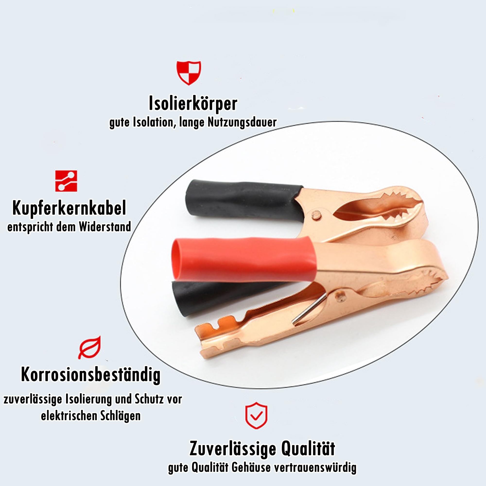 【Wysokiej jakości materiały】Solidne krokodylki wykonane są z czystej miedzi i pokryte gumą, co zapewnia doskonałą izolację.