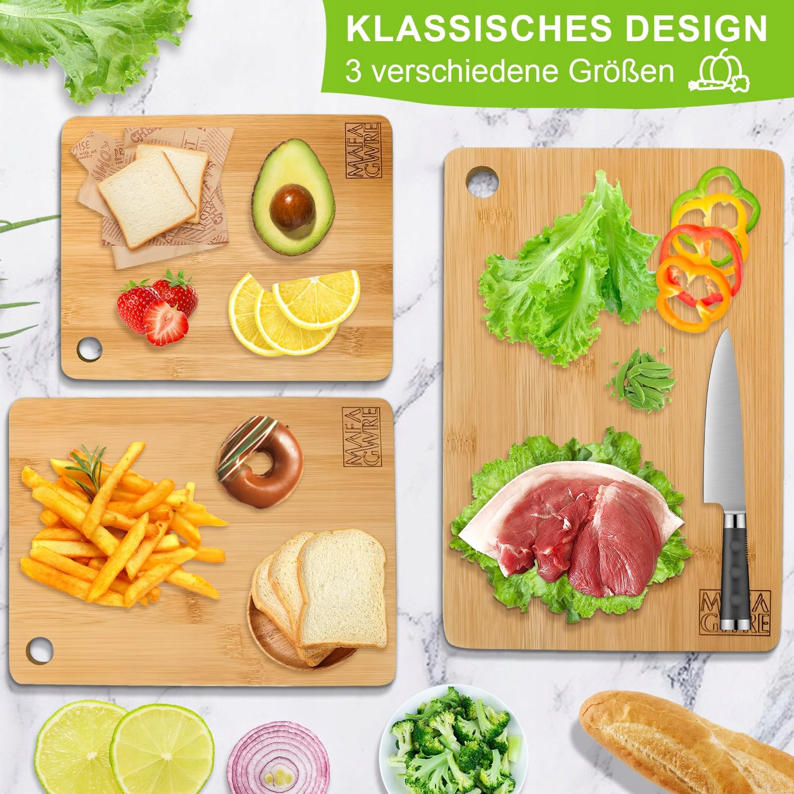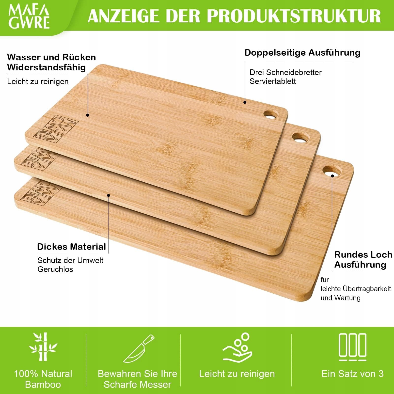 MAFAGWRE Zestaw 3 Desek Do Krojenia Bambusowych Deski Kuchenne Drewniane