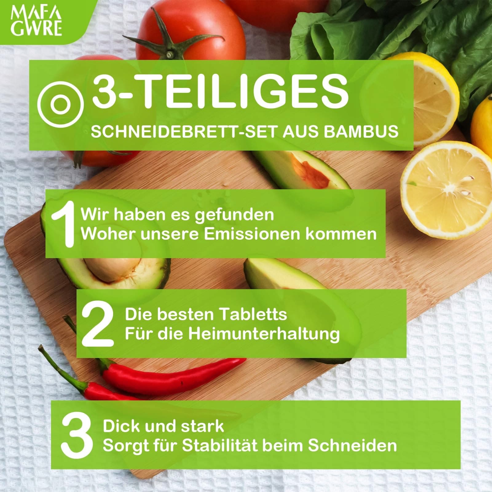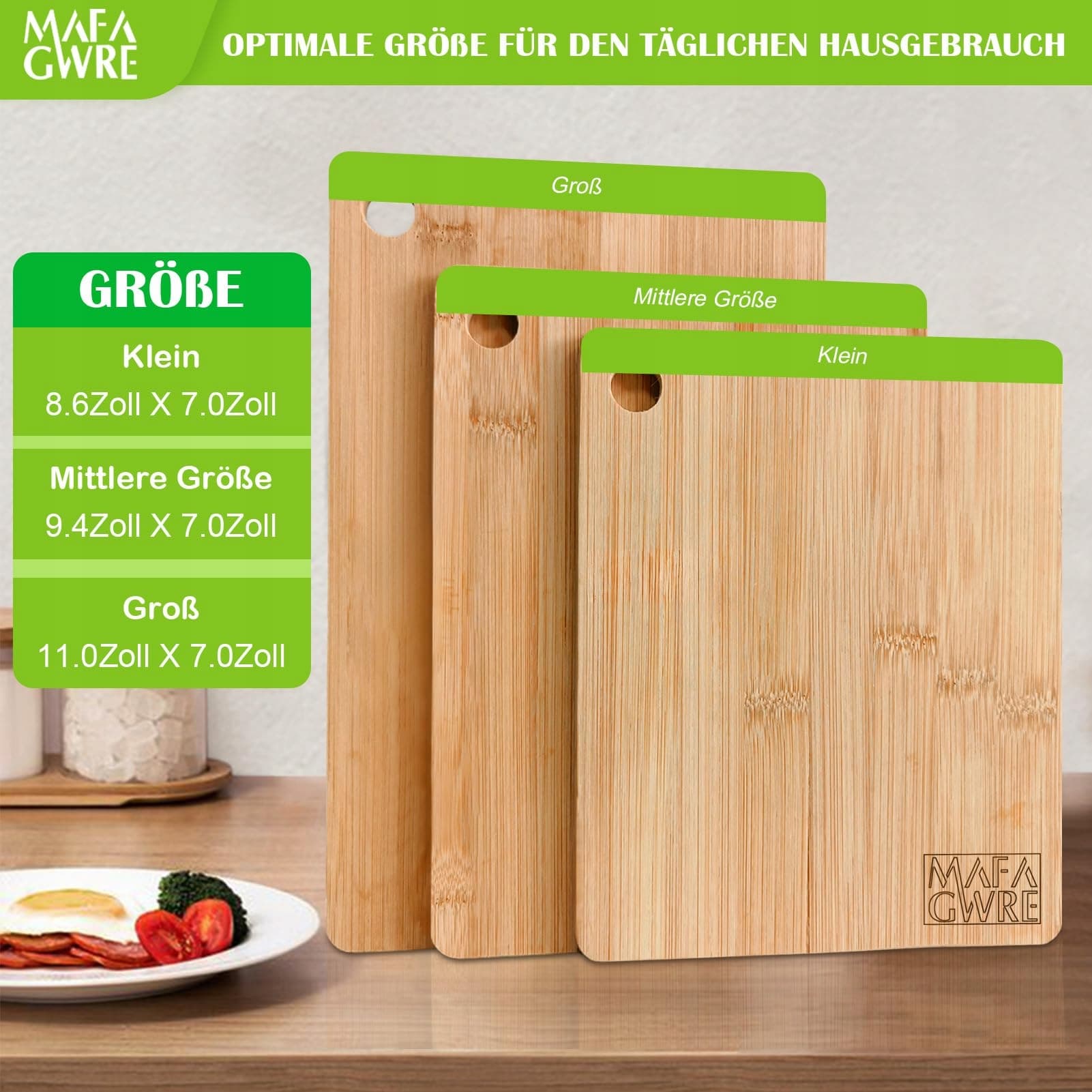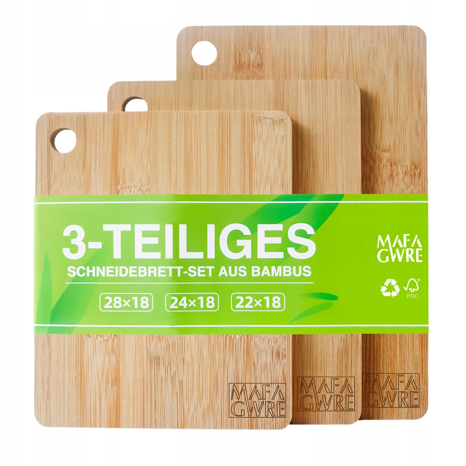 Mafagwre Bambusowa deska do krojenia, zestaw 3 desek do krojenia z drewna - 28x18cm / 24x18cm / 22x18cm, deski do krojenia kuchenne, deska śniadaniowa z drewna