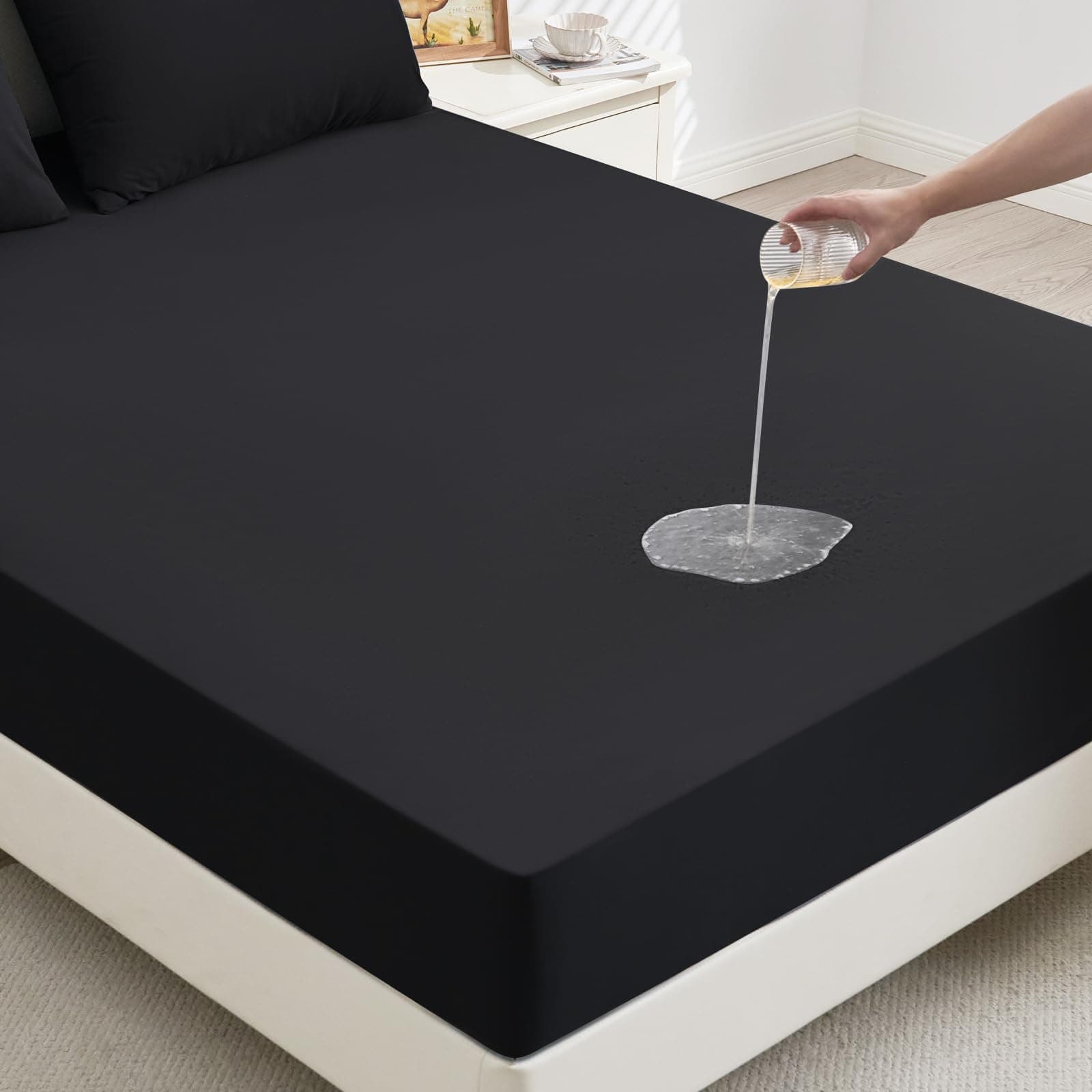 mafudoxi ochraniacz na materac 160x200cm wodoodporny, prześcieradło, ochrona materaca oddychająca, nakładka na materace do 30cm, podkładka na nietrzymanie moczu do prania, ochrona przed wilgocią prześcieradło-czarny