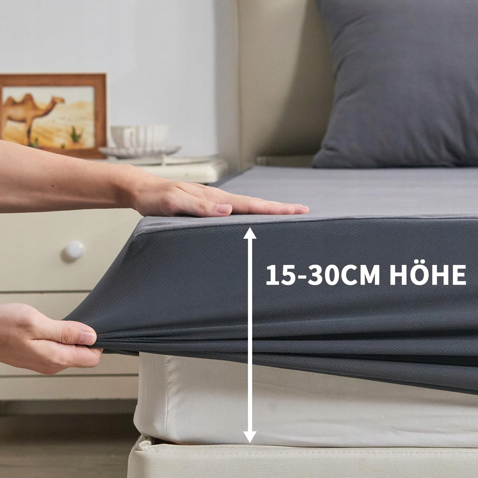 IDEALNE DOPASOWANIE: Wodoodporny ochraniacz na materac pasuje do wszystkich materacy o wysokości 15-30 cm. Nasza nakładka na materac ma wysokoelastyczne boki, dzięki okrążającej stronie jej użycie jest tak proste jak w przypadku prześcieradeł lub prześcieradeł z gumką i nic się nie przesuwa.