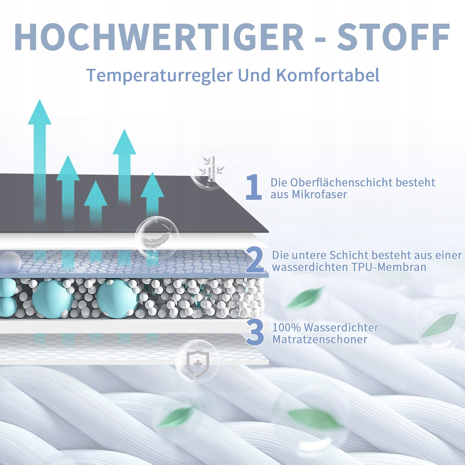 OPTYMALNA OCHRONA: Ochraniacz na materac zachowuje miękkie, przytulne, ciche i oddychające uczucie Twojego materaca. Nasz ochraniacz na materac zapewnia optymalną ochronę przed wilgocią i brudem w Twoim łóżku. Dzięki miękkiej tkaninie prześcieradła nie wydają żadnych dźwięków, zapewniając najprzyjemniejszą jakość snu.
