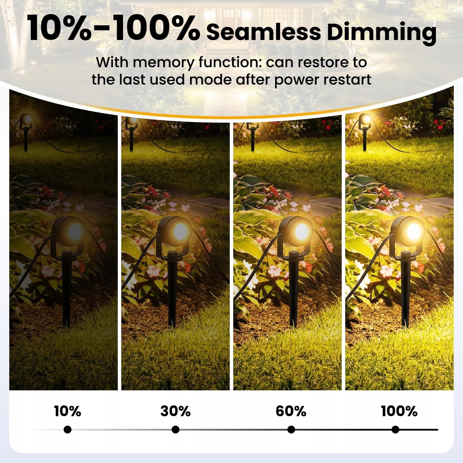 MAGGIFT oświetlenie ogrodowe LED, 17 m 24 V ściemnialny reflektor LED z pilotem/tymerem/3 trybami światła, wodoodporny reflektor ogrodowy IP67, lampy ogrodowe z adapterem, lampy ogrodowe na zewnątrz, ogród, podwórko