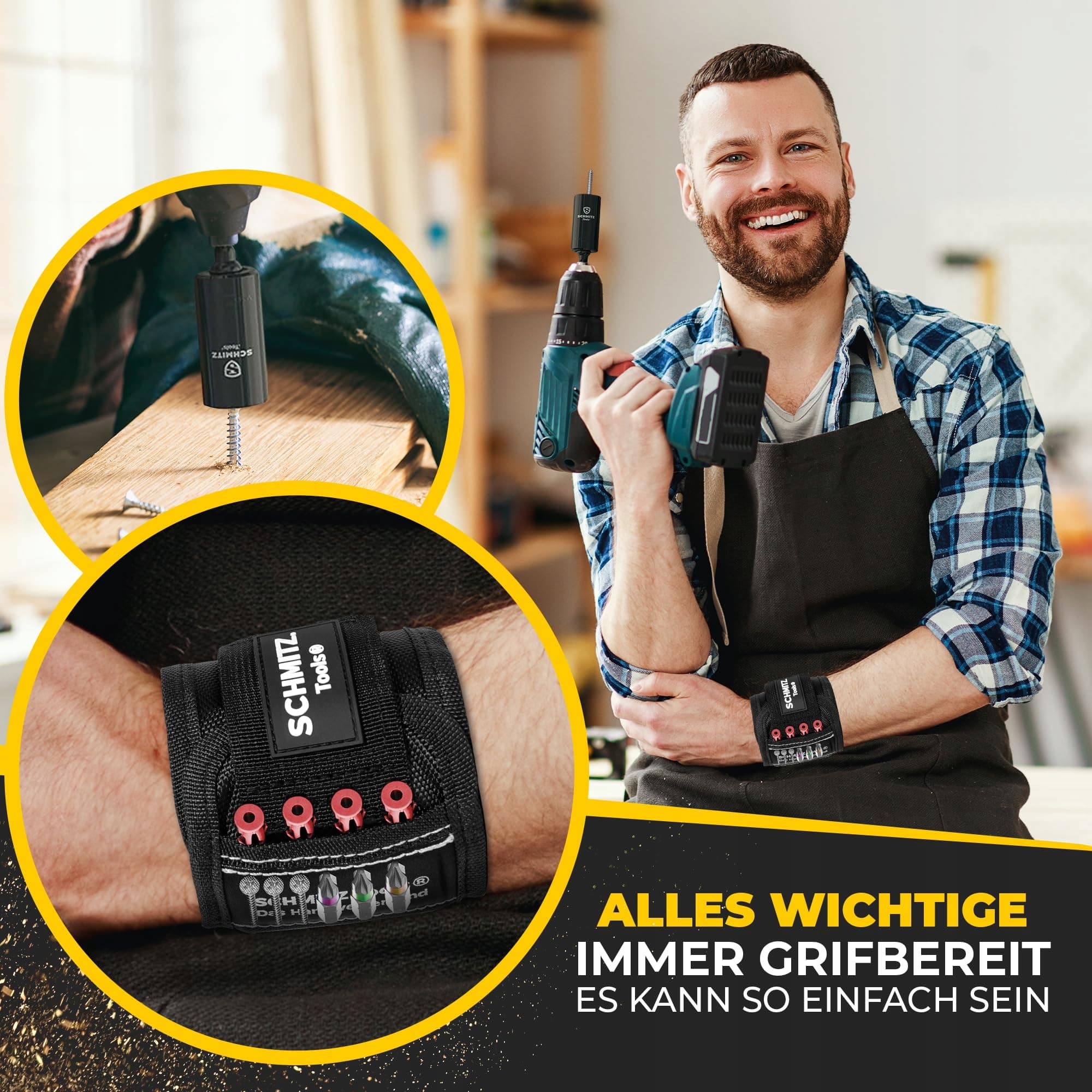SCHMITZ.Tools Magnetyczna bransoletka dla rzemieślników - Prezent dla niego na Walentynki – Śmieszne prezenty dla mężczyzn – Prezenty dla panów – Gadżety dla mężczyzn - Prezent dla taty – Prezenty dla mężczyzn