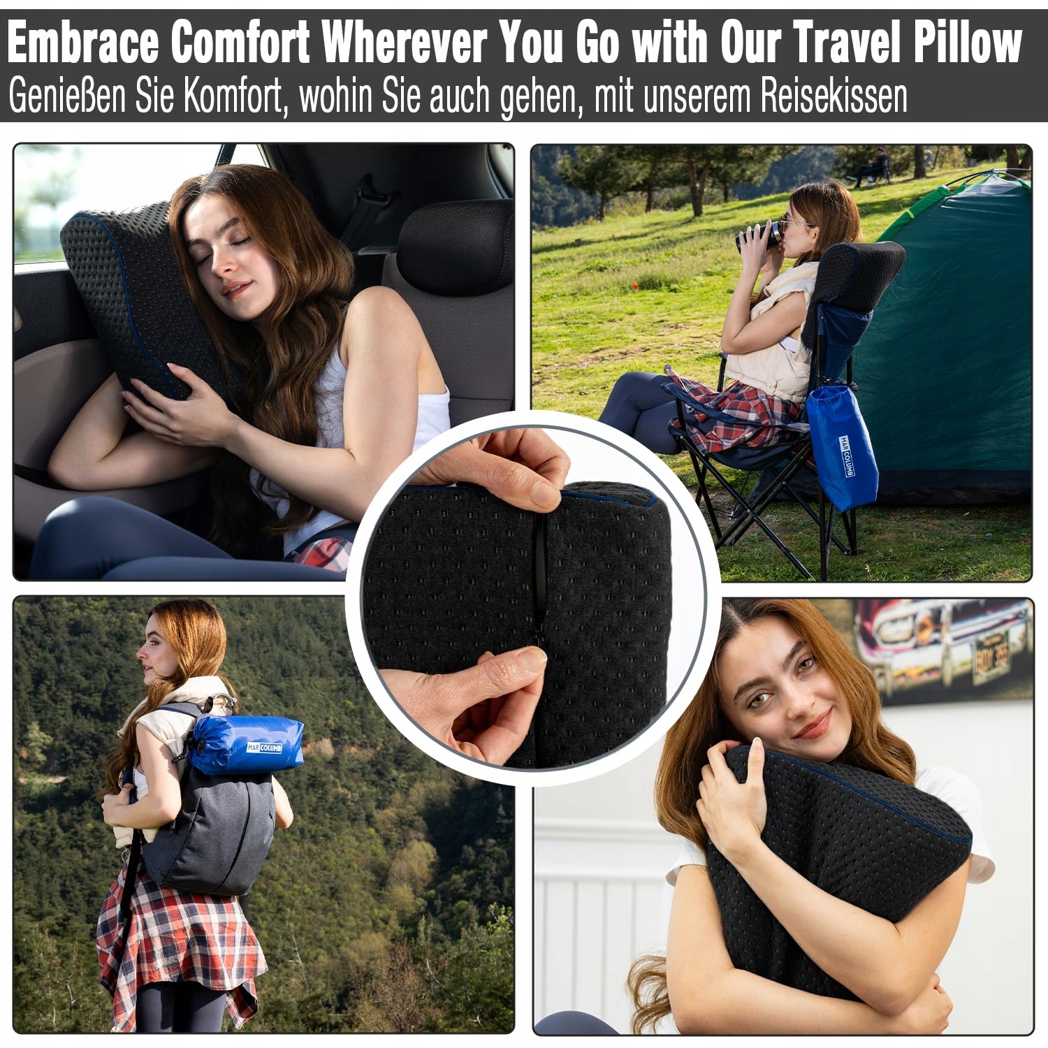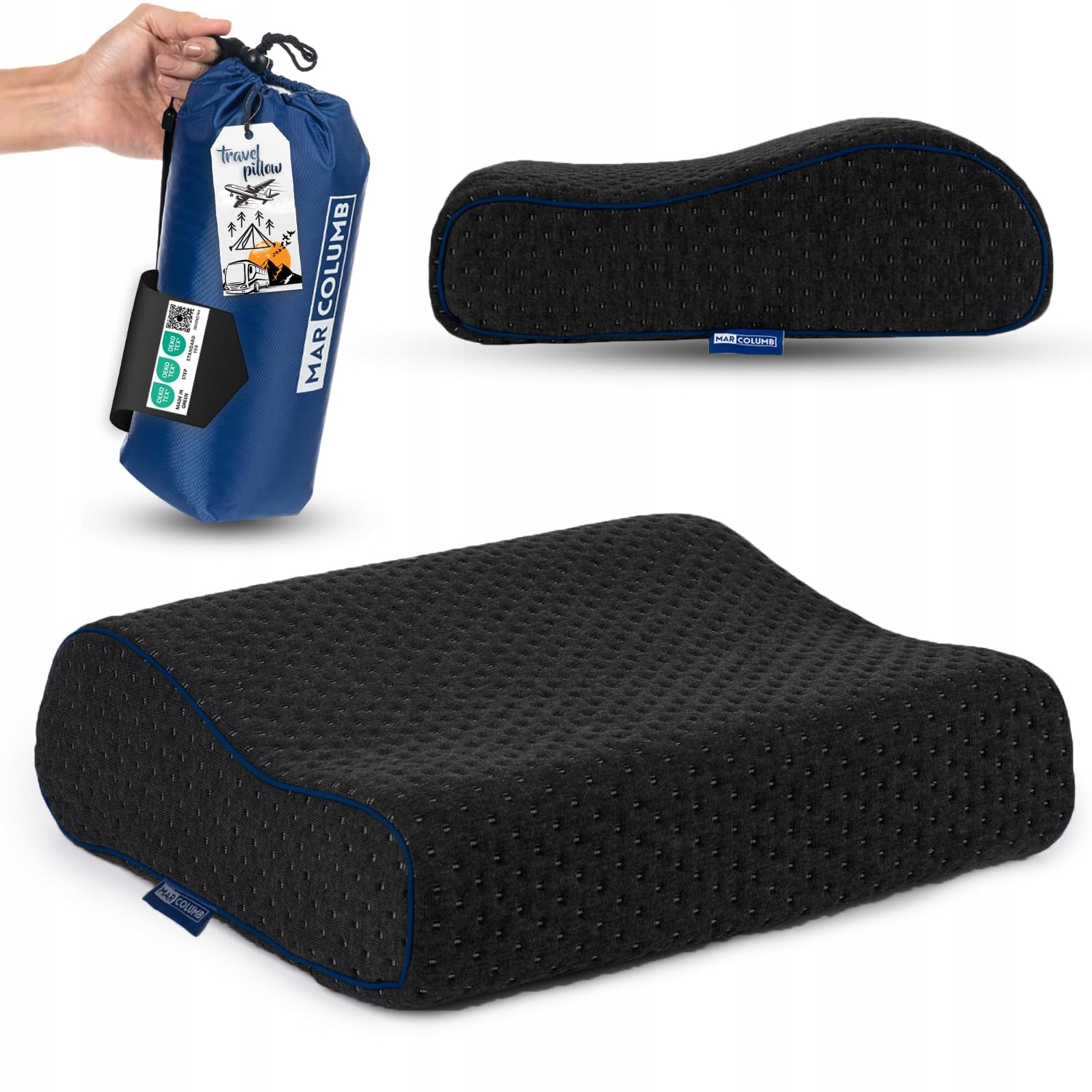 MARCOLUMB Poduszka Turystyczna Ergonomiczna Z Pianką Memory Oeko-TEX