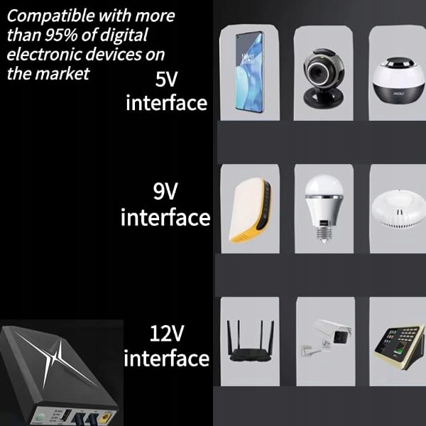 [WSZECHSTRONNE ZASILANIE AWARYJNE] Ten kompaktowy zasilacz awaryjny jest kompatybilny z różnymi urządzeniami, takimi jak routery, modemy, kamery monitoringu, smartfony i inne, zapewniając zasilanie awaryjne w przypadku awarii.