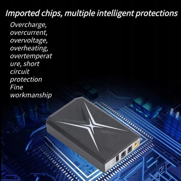 [PODWÓJNE OPCJE WEJŚCIA] Mini UPS zapewnia elastyczność dzięki dwóm metodom wejścia, albo przez adapter DC 5V-9V-12V, albo przez wejście USB 5V-2A.