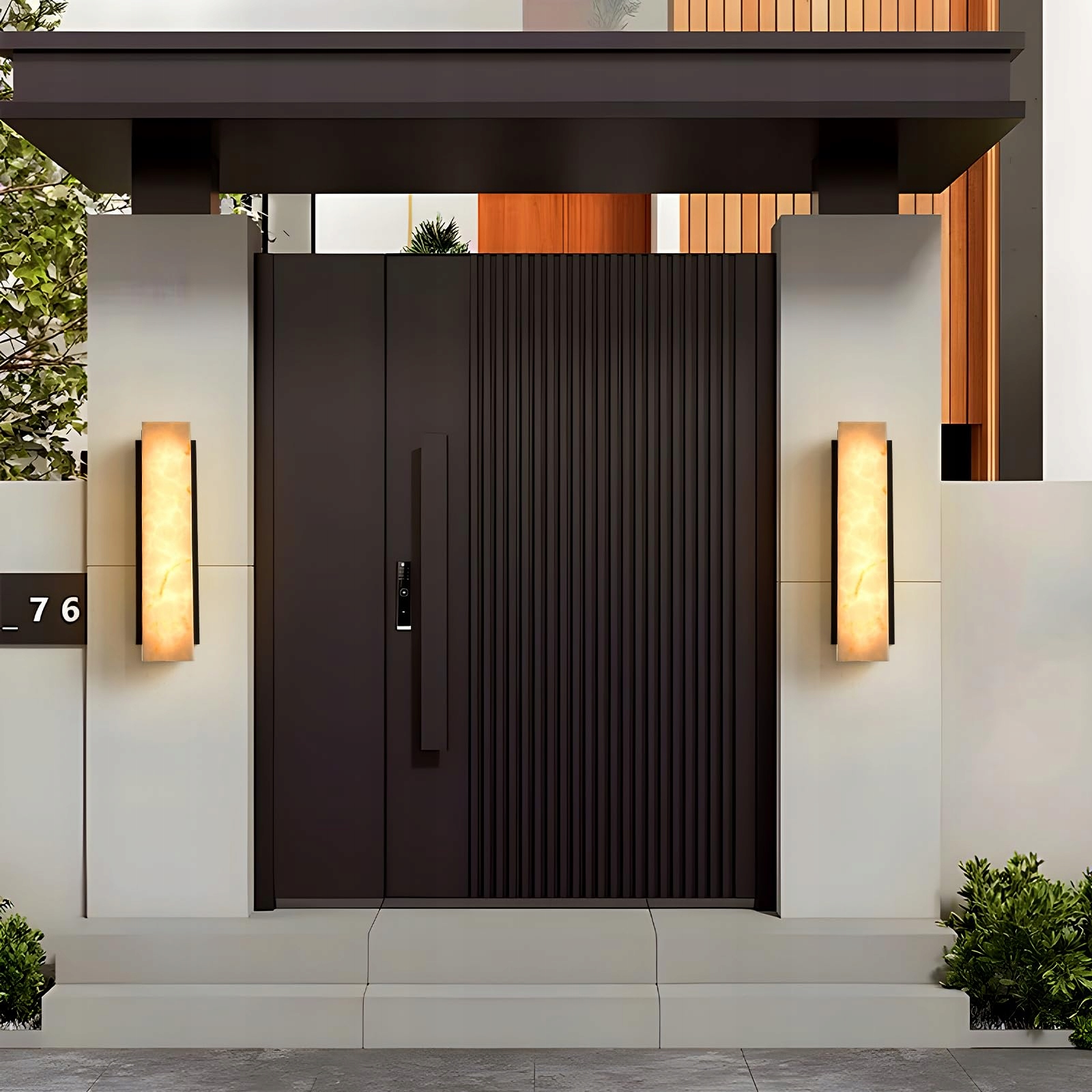 Lampa zewnętrzna ścienna w imitacji marmuru, nowoczesna lampa ścienna na zewnątrz do willi i słupów bramowych, wykonana z żywicy i czarnej stali nierdzewnej, prostokątna lampa ścienna na zewnątrz, wodoodporna lampa ścienna LED, ciepłe światło - 45 cm