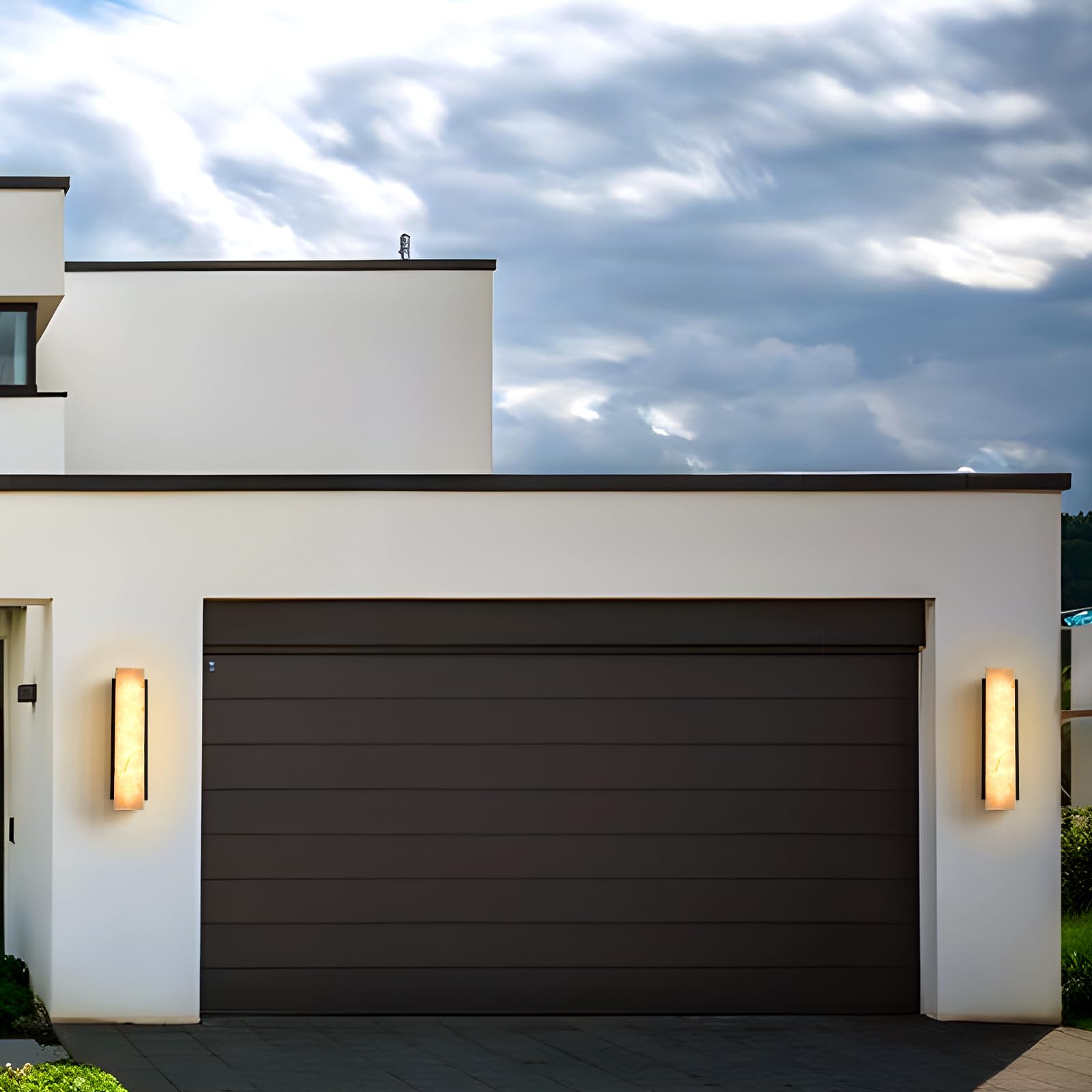Stylowy design: Ta nowoczesna zewnętrzna lampa ścienna LED wykonana jest z wysokiej gęstości żywicy i ma profesjonalnie polerowaną powierzchnię, która tworzy realistyczną strukturę marmuru oraz luksusowy wygląd naturalnego kamienia. Wysokiej jakości prostokątna obudowa ze stali nierdzewnej idealnie komponuje się z kloszem w imitacji marmuru. Dzięki ciepłemu światłu ta lampa ścienna na zewnątrz jest wyjątkowym dodatkiem do każdego domu, zarówno wewnątrz, jak i na zewnątrz