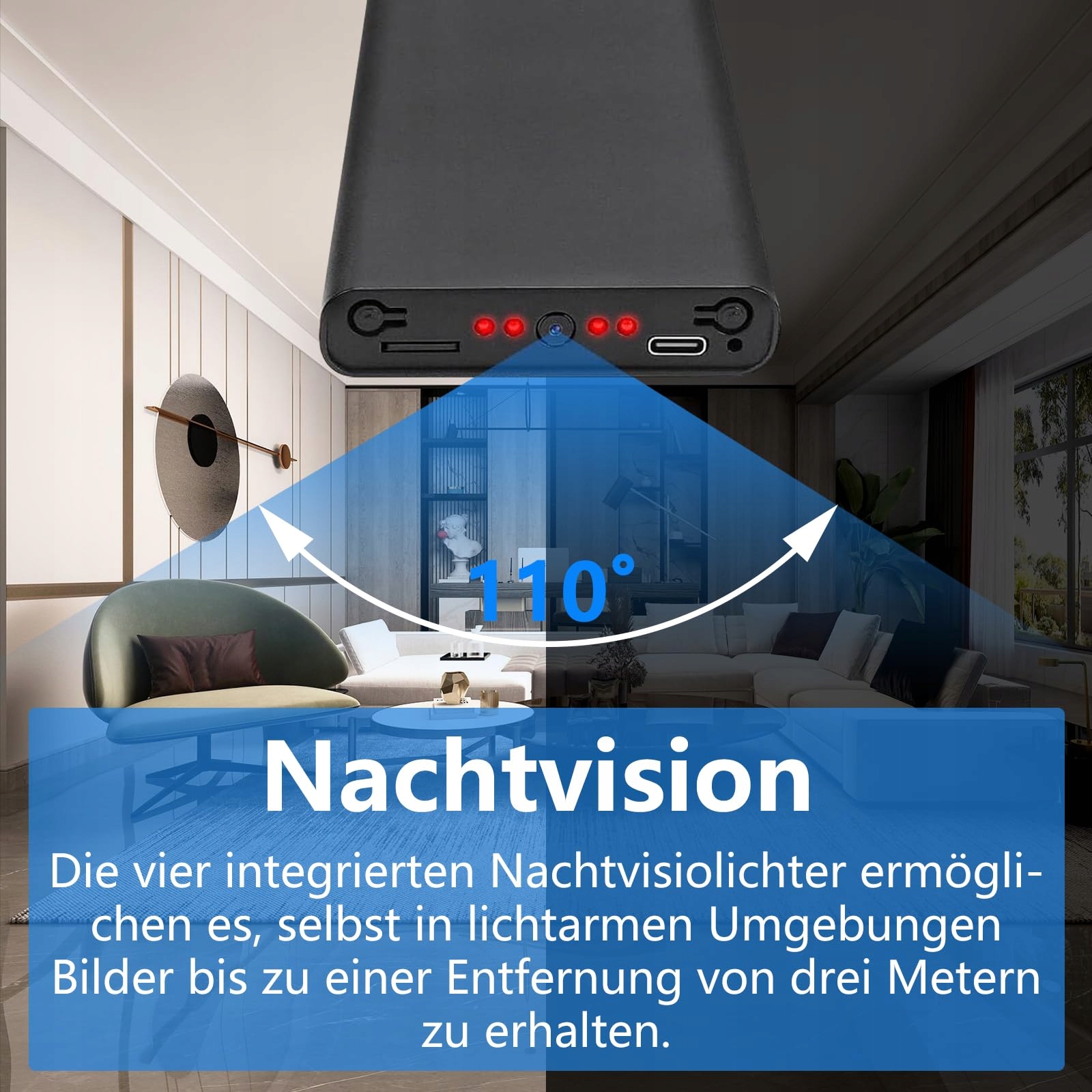 【Bardzo długi czas nagrywania】: Urządzenie wyposażone jest w wysokiej jakości akumulator 10 000 mAh, który po pełnym naładowaniu zapewnia około 55 godzin pracy. Ponadto obsługuje pracę podczas ładowania. Dzięki funkcji czujnika grawitacji nie musisz się martwić o niewłaściwe ustawienie przy odwróconych nagraniach – nagrania zawsze pozostają pionowe.