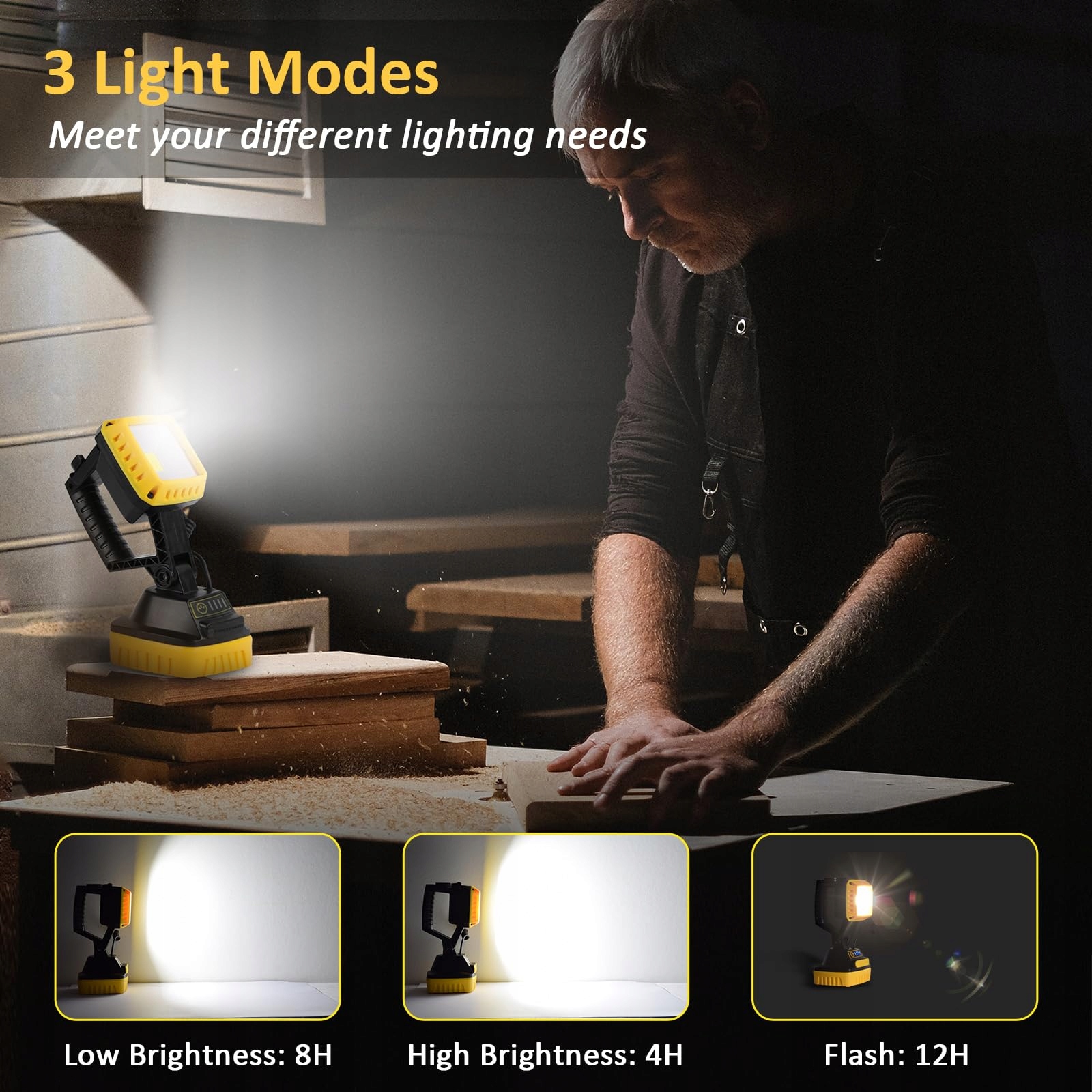 【RÓŻNORODNE ZASTOSOWANIA】: Przenośne lampy robocze LED na baterie są wykonane z wysokiej jakości materiałów, dostosowują się do różnych środowisk pracy i są doskonałym wyborem na nagłe wypadki, takie jak naprawy samochodów, kemping, wędrówki i inne awarie zasilania.