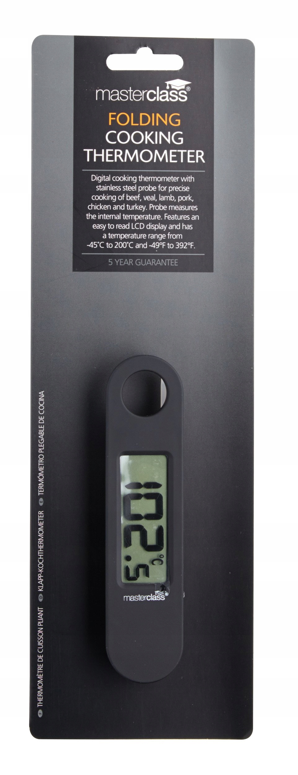 MasterClass Cyfrowy termometr do mięsa z składanym czujnikiem, czarny