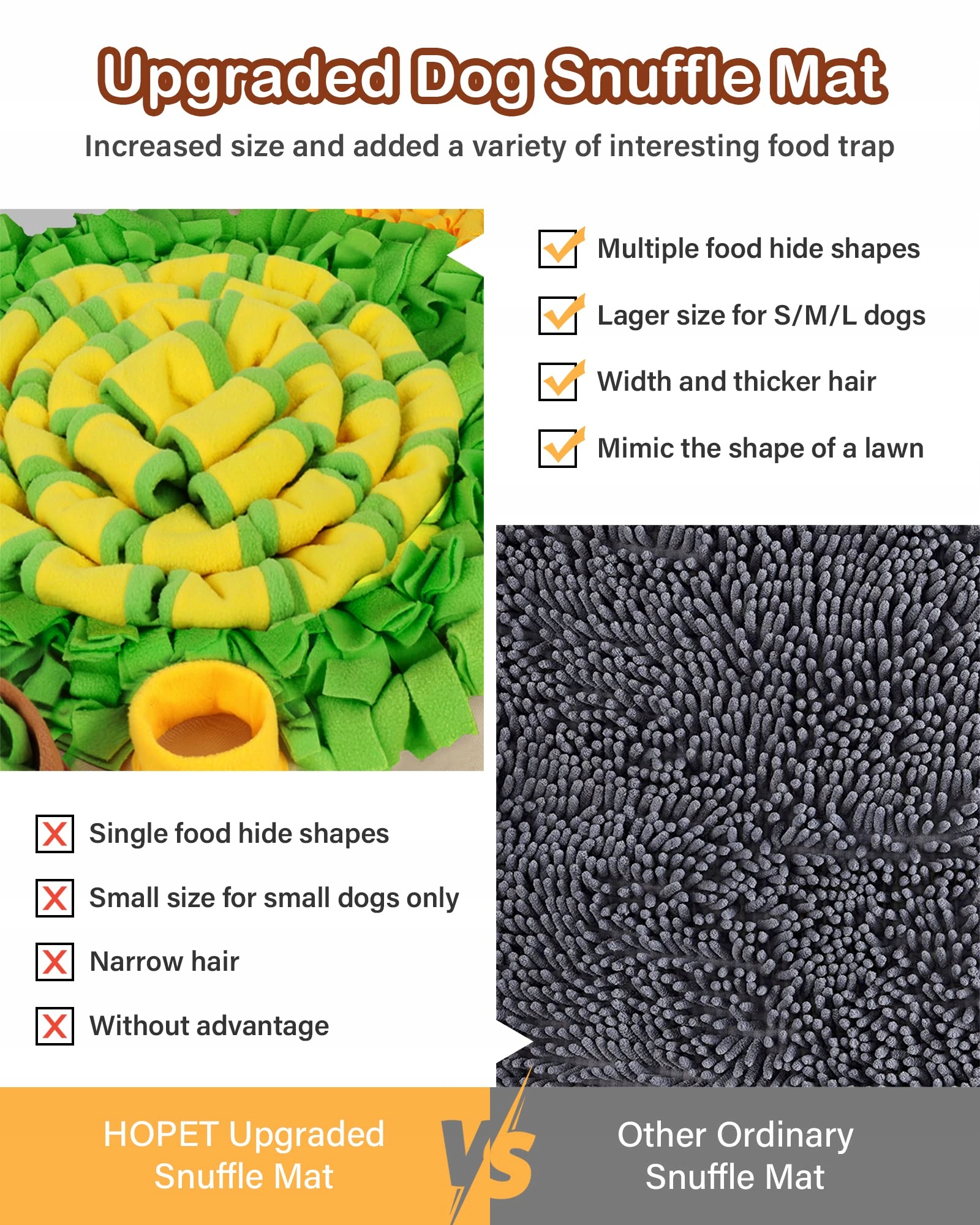 Zaangażuj zmysły swojego psa dzięki bezpiecznemu i unikalnemu designowi: Wykonany z wysokiej jakości, nietoksycznych i trwałych materiałów, nasz sznuflowy dywanik posiada 4 dodatkowe kieszenie na jedzenie dla inteligentnych i doświadczonych psów. Niektóre psy nawet lubią leżeć na materiale po znalezieniu całego ukrytego jedzenia.