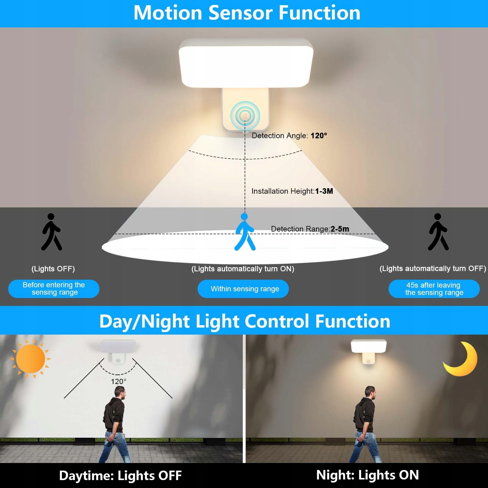 【Wskazówki dotyczące instalacji】Klienci kupujący 2 lub więcej lamp ściennych z czujnikiem ruchu proszeni są o zwrócenie uwagi na odległość instalacji między lampami (zalecany odstęp 5M-7M); jeśli dwie lampy zostaną zainstalowane zbyt blisko siebie, oba czujniki w lampach będą odbierać nakładające się światło i nie będą mogły prawidłowo działać, co wpłynie na efektywność użytkowania.