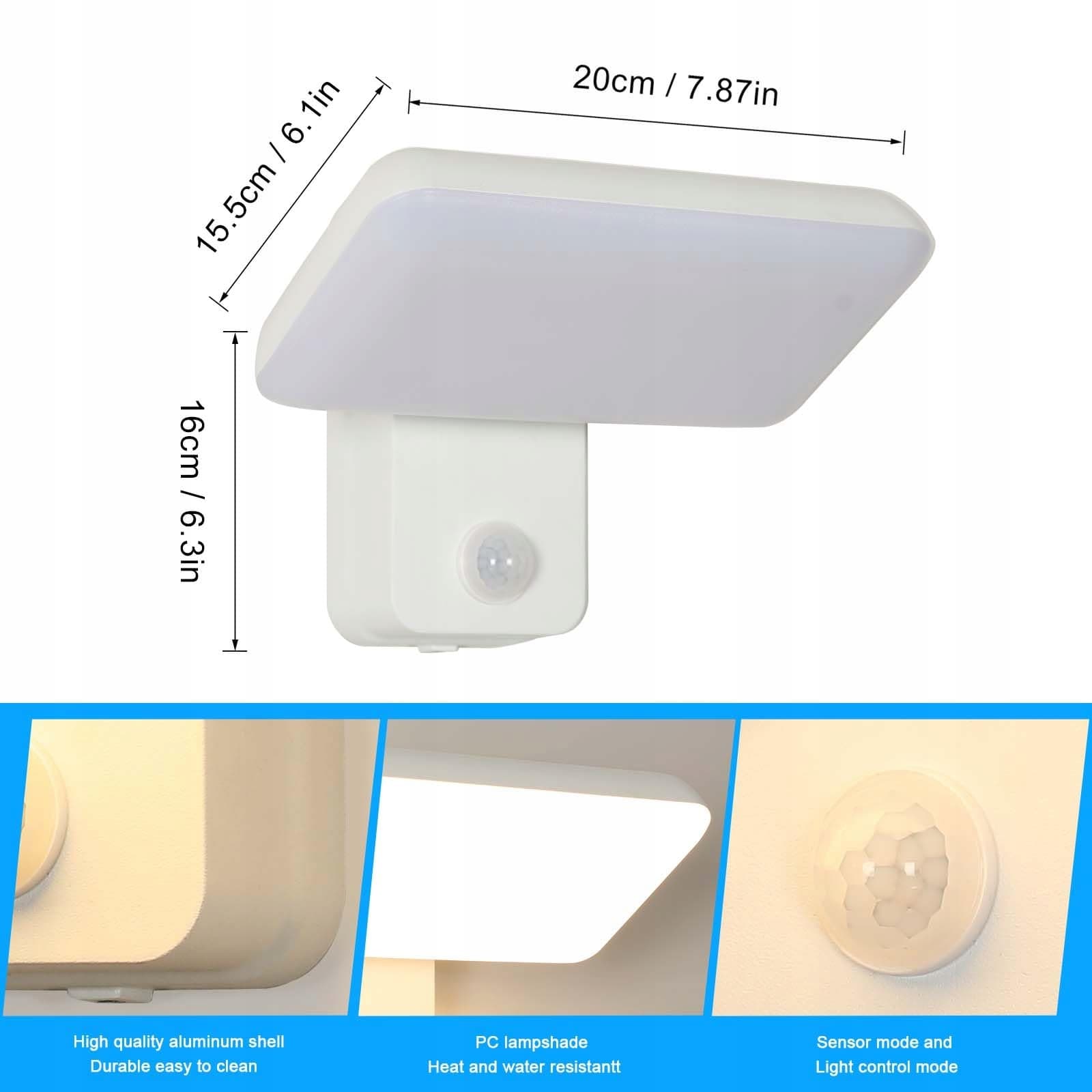 MCKALEN Nowoczesna Lampa Ścienna LED 16W IP65 z Czujnikiem Ruchu Biała | Premium Supply