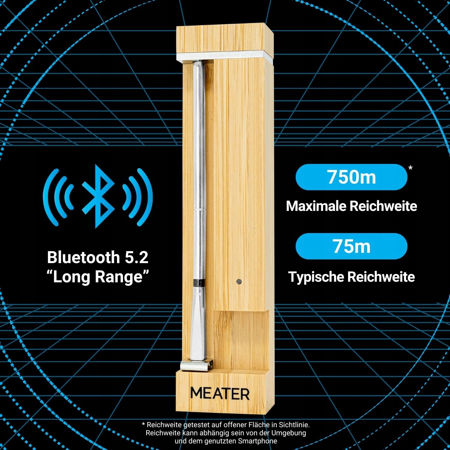 JESZCZE BARDZIEJ EFEKTYWNY: Jeszcze większy zasięg dzięki Bluetooth 5 Coded Phy, zaktualizowanemu projektowi stacji ładującej, funkcji szybkiego ładowania i nowym funkcjom aplikacji, takim jak innowacyjny przewodnik przepisów MEATER Master Class.
