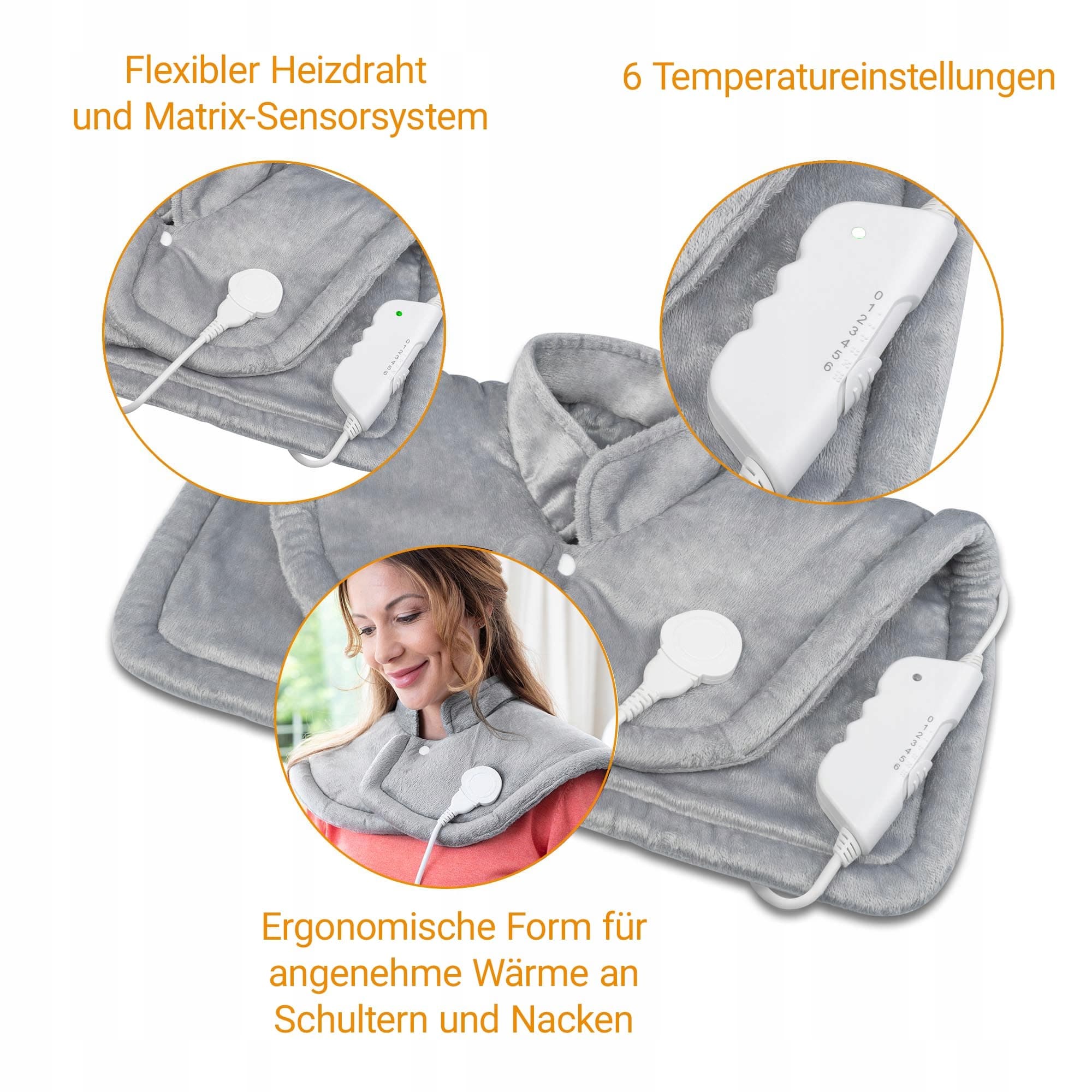 6 poziomów temperatury: Poduszka grzewcza na ramiona jest regulowana indywidualnie na sześciu poziomach temperatury i zaprojektowana tak, aby spełniać każde potrzeby