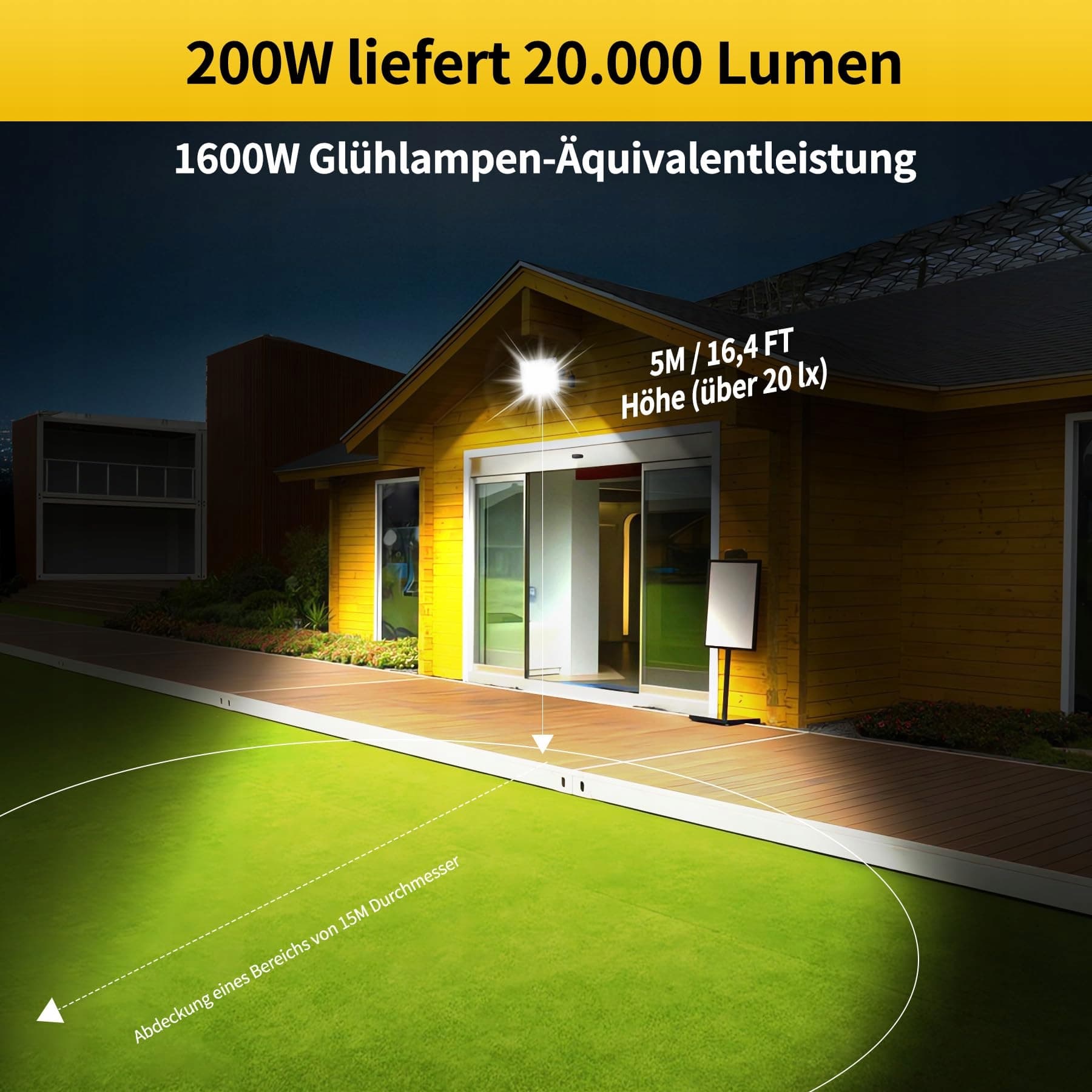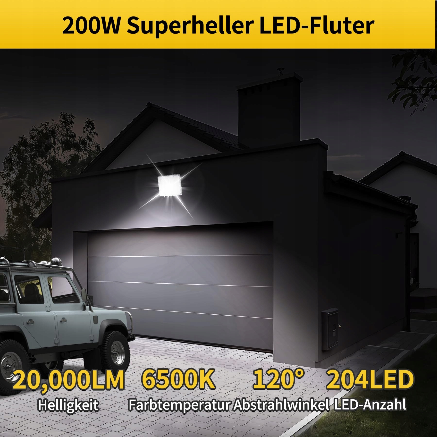 Ultra jasny reflektor LED: Naświetlacz wykorzystuje wysokiej jakości diody SMD 2835 i dostarcza przy 200 watach niesamowitą jasność do 20 000 lumenów. Zimne białe światło 6500K odtwarza naturalne światło i zapewnia wyraźne i jasne oświetlenie