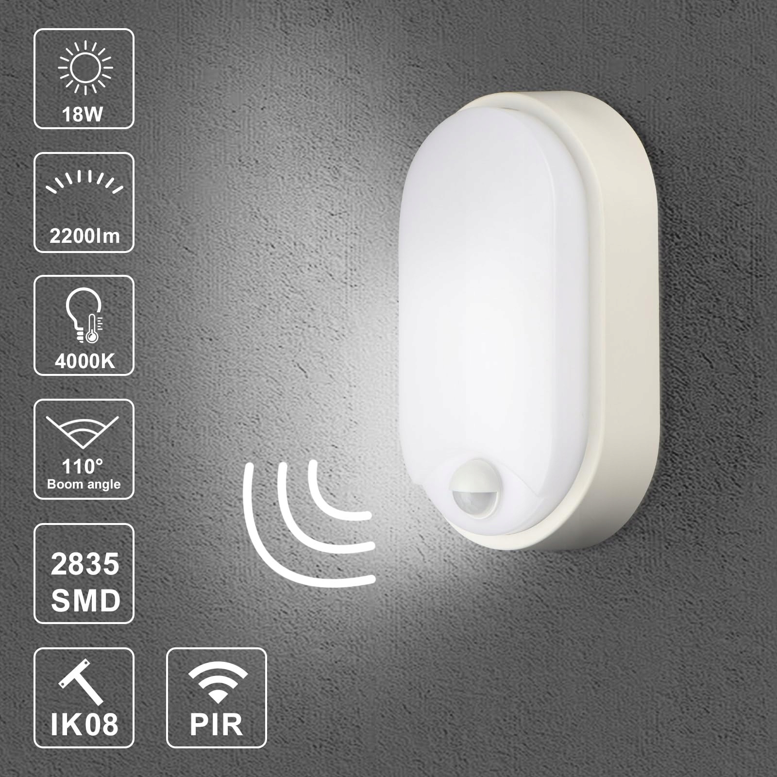 MEGACUBE 18W Owalna Lampa LED Z Czujnikiem Ruchu IP65 Do Ogrodu Biała | Premium Supply