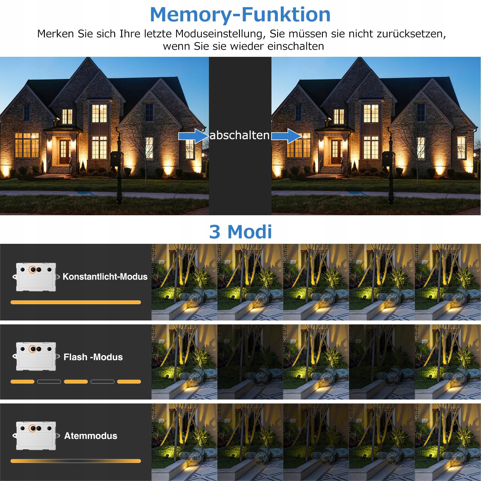 [Bogate 3 Tryby]: MEIHUA Solarne Lampy Ogrodowe mają 3 regulowane tryby. ①Tryb stałego światła. ②Tryb migania. (światło jest włączone, potem wyłączone, potem znowu włączone i tak dalej.) ③Tryb oddychania. (Jasność zmienia się od silnej do słabej, potem od słabej do silnej i cykl trwa dalej.)