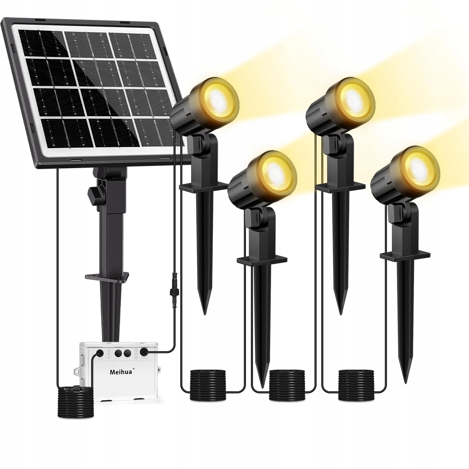 MEIHUA Solar Strahler 4 sztuki Solarne Lampy Ogrodowe, 2700K Ciepła Biała IP66 Wodoodporne 5000mAh Lampy Słoneczne na zewnątrz, 3 Jasności 3 Tryby regulowane 14M Kabel do Ogrodów Krzewów Drzew Tarasów