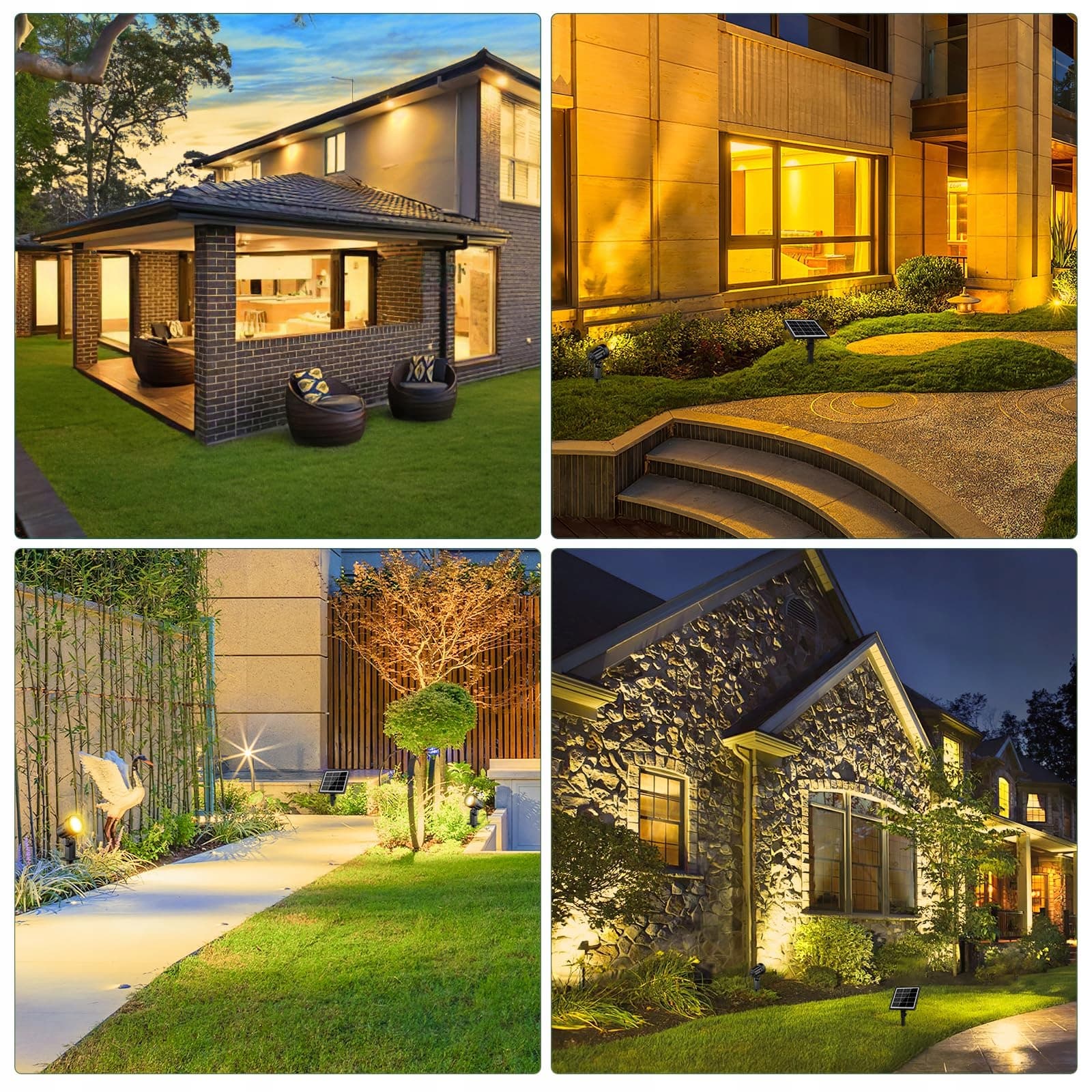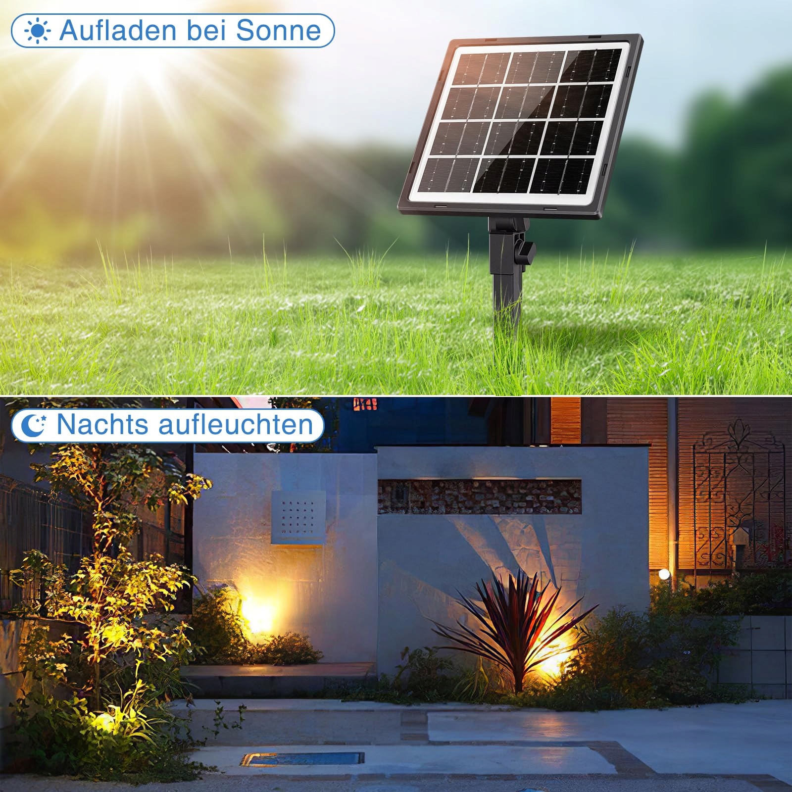 [Solarne Reflektory Ogrodowe z Nowym Ulepszonym Projektem Optycznym]: Wyposażone w duży panel słoneczny 6V 4W, automatycznie ładuje się w ciągu dnia, pełne naładowanie trwa 8 godzin. Automatycznie włącza światło w nocy. Lampa słoneczna z soczewką emituje ciepłe i niezawodne światło, a zasięg świecenia jest większy. W porównaniu do światła SMD, światło jest bardziej skoncentrowane, a punkt bardziej równomierny. Wydajność świetlna w odległości 2 metrów jest ponad pięć razy wyższa niż w przypadku zwykłych punktów świetlnych bez soczewek.